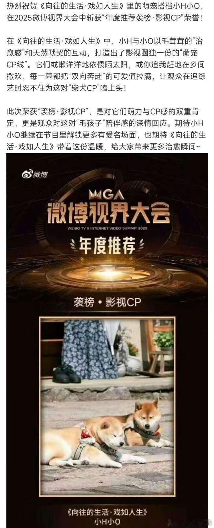 cp奖给了两只狗 向往的生活cp奖给了两只狗 真的是实至名归啊,有谁会不喜欢这两只狗狗呀! CP奖在向往的生活