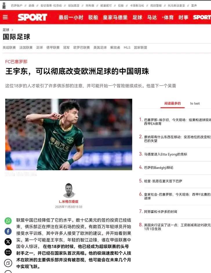 每日体育:王钰栋,这位可能革新欧洲足球的中国明珠。 这位18岁的天才球员吸引了众多俱乐部的关注,他有望开启一段继续成长的旅程。 他就是下一个武磊。 这个报道是不是真的?虽然有人认为有吹嘘的成分,但是这也足以说明,王钰栋在中超的表现,还是得到了认可和关注。接下来看王钰栋如何选择,是去欧洲还是继续留在中超。 另外,我们需要第二个、第三个~更多个王钰栋,中国足球何愁不兴呢!王钰栋