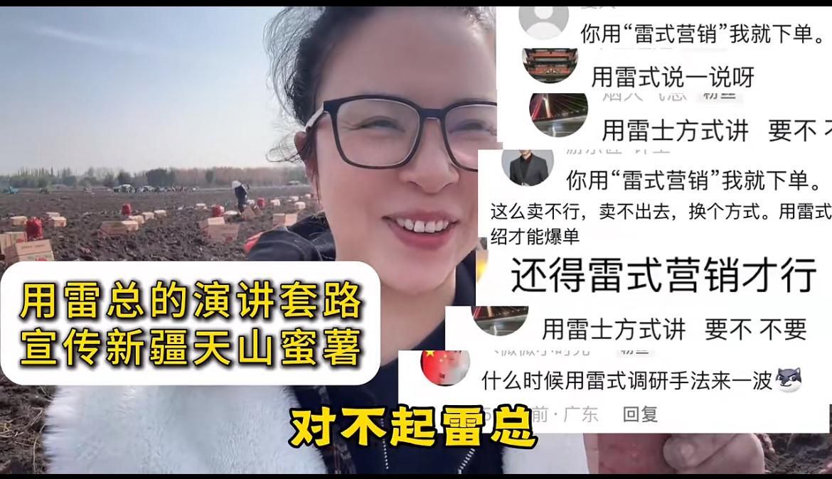 模仿雷式营销话术走红的公子馨,原来在深圳搞农业亏了450多万,卖房还债,没想到还能东山再起,又是一个励志典型啊。她在深圳包了几百亩地种荔枝,亏得底裤掉。大家以为她消失了,没想到转战新疆搞农业,用雷式营销推广新疆沙地薯一炮而红。这一波蹭流量的,多半都是恶搞,没有商业价值,她算是真的蹭到了。深圳芸馨励志 公子薇 妤温团队 薇芷欣团队