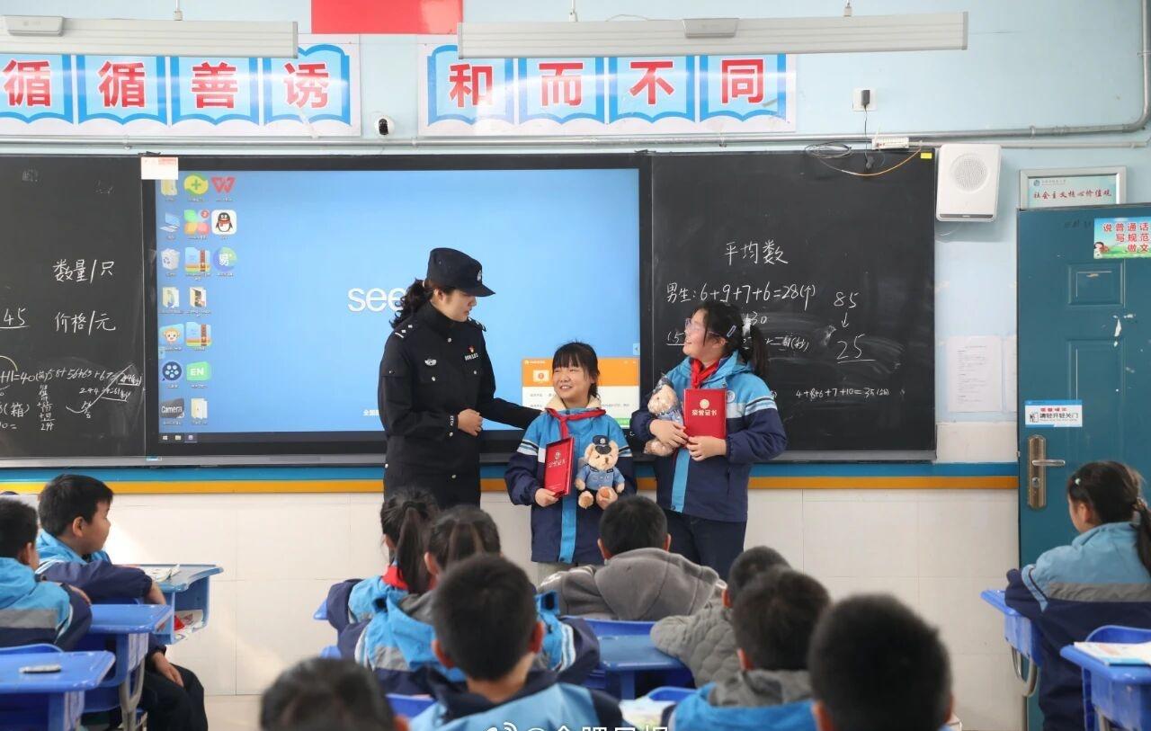 为表扬四位小朋友拾金不昧的优秀品质,合肥市公安局新站分局三十头派出所的民警特意准备了一份“惊喜”——专程来到四位同学所在的学校,为她们颁发了奖状和警察小熊纪念品。 这次表彰活动在校园内引起了热烈反响。它不仅是对四位同学个人善举的肯定,更是一堂生动的思想道德实践课,让“拾金不昧”的种子在更多孩子心中生根发芽,展现了新时代少年良好的精神风貌。