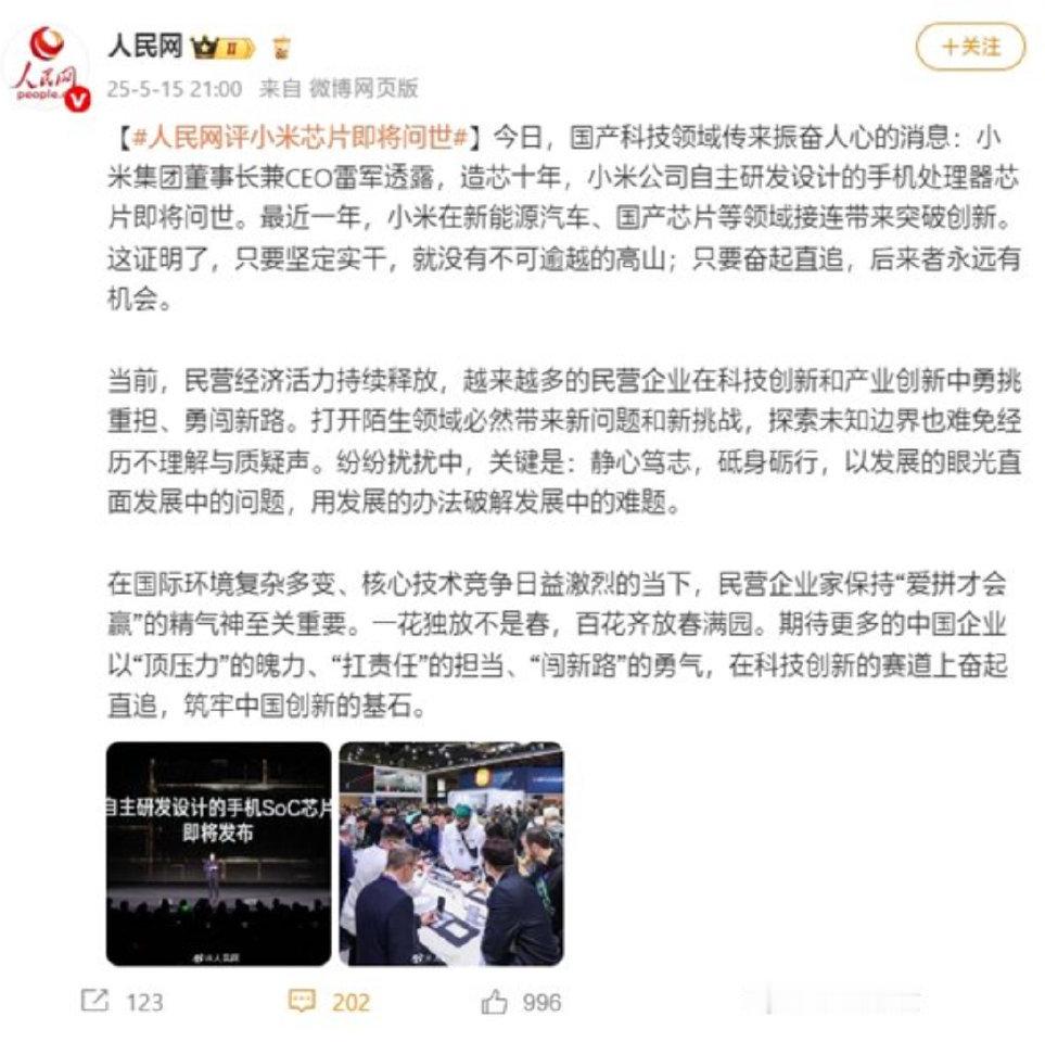 哈哈哈哈,最近官媒都出来力挺小米了,而且车和手机以及生态还在继续创新高。