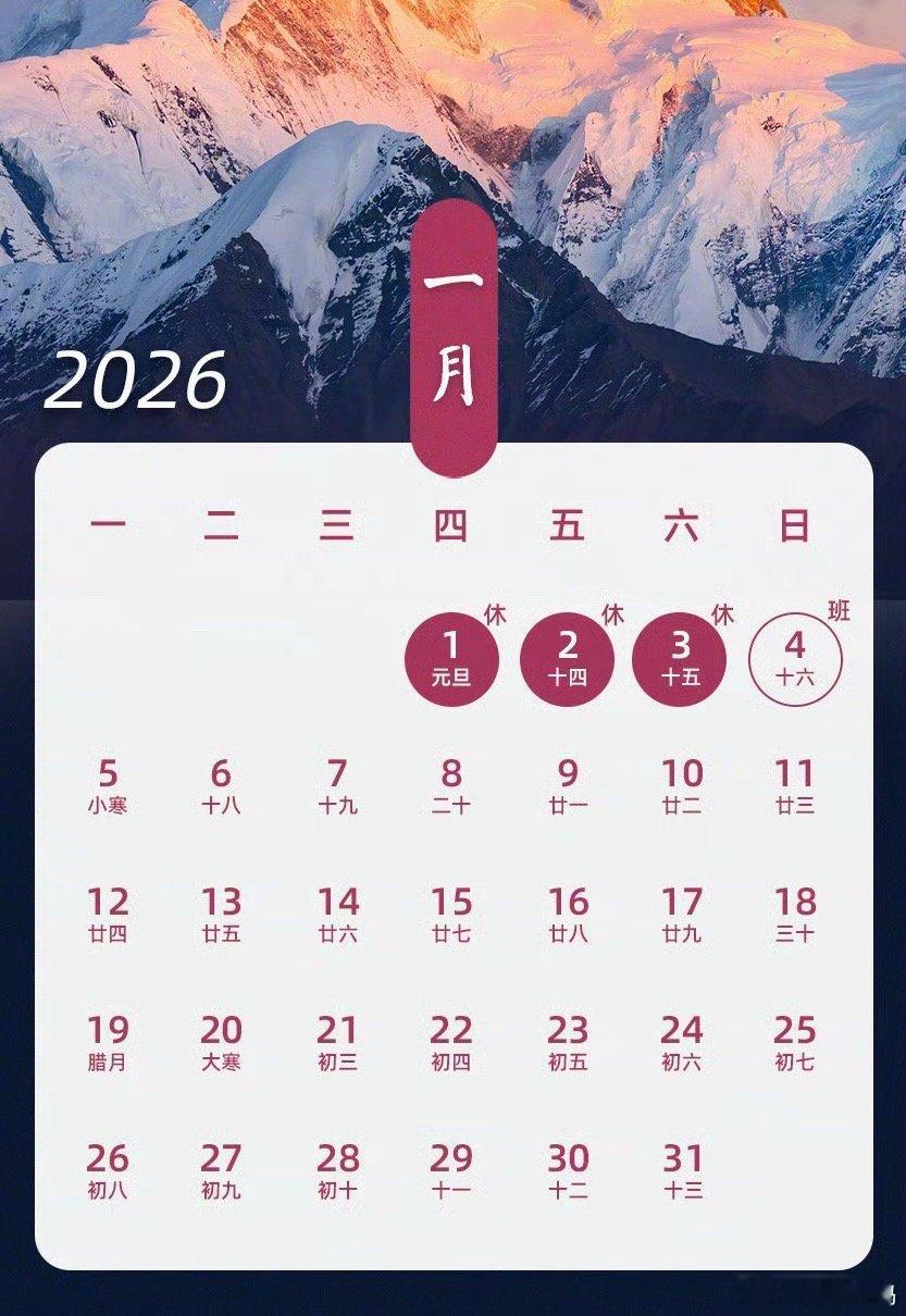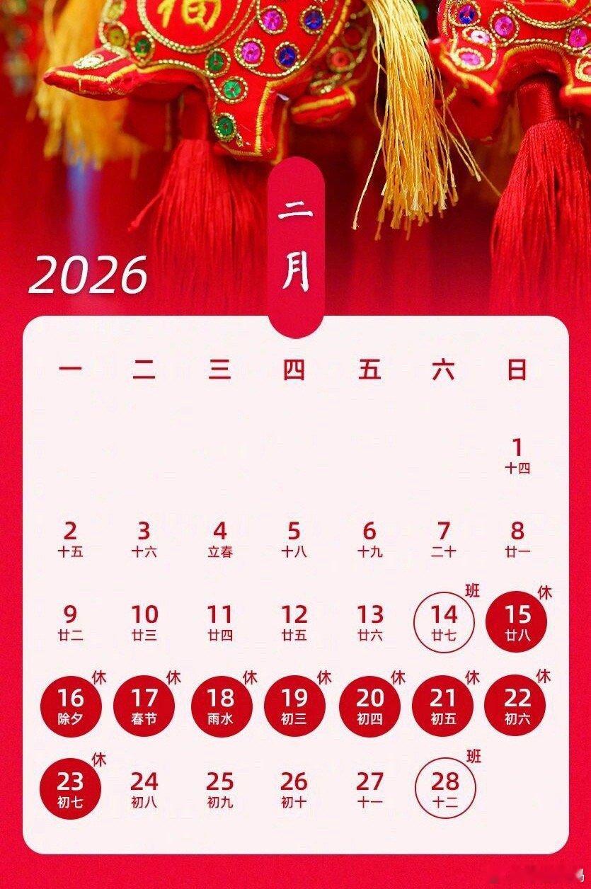 2026春节放9天假元旦3天调休1天,春节放假9天调休2天,有盼头了吗[doge