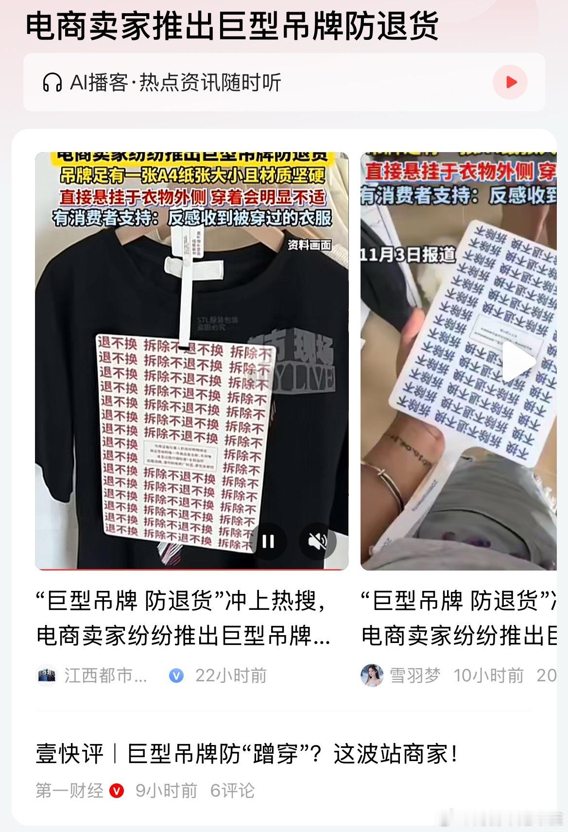 巨型吊牌防退货:防“白嫖”还是伤买家?商家用巨型吊牌防恶意退货,被指“恶心消