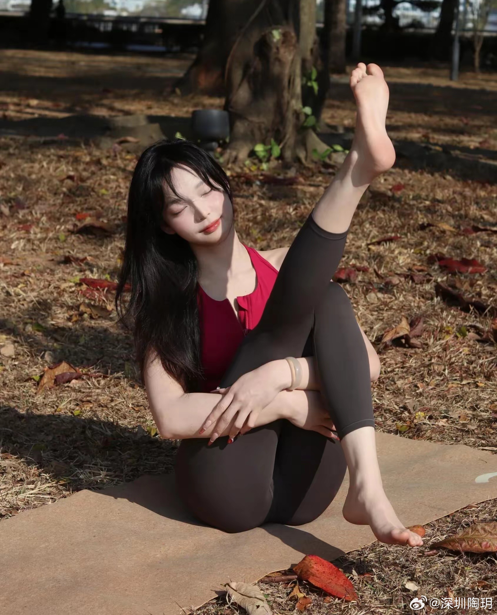 带狗狗练瑜伽的小姐姐。[鲜花]