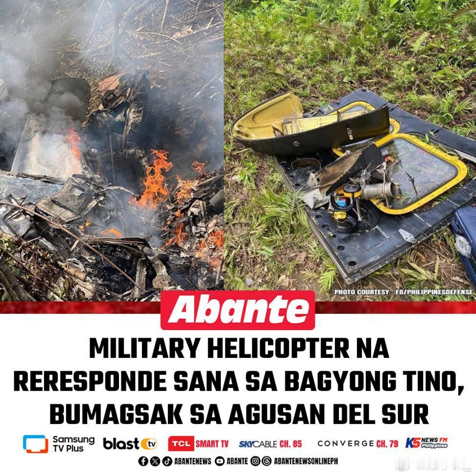菲律宾空军一架UH-1H直升机今天从达沃飞往武端途中坠毁,机上6人全部丧生。