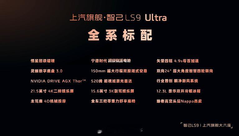 新车划重点11月4日,智己LS9正式开启预售,价格区间为34.69-37.69万元。作为旗舰级大六座SUV产品,智己LS9汇集上汽集团近十余年优秀技术为一体,希望通过次,电镀对大六座SUV的想象。以下为新车的亮点功能: