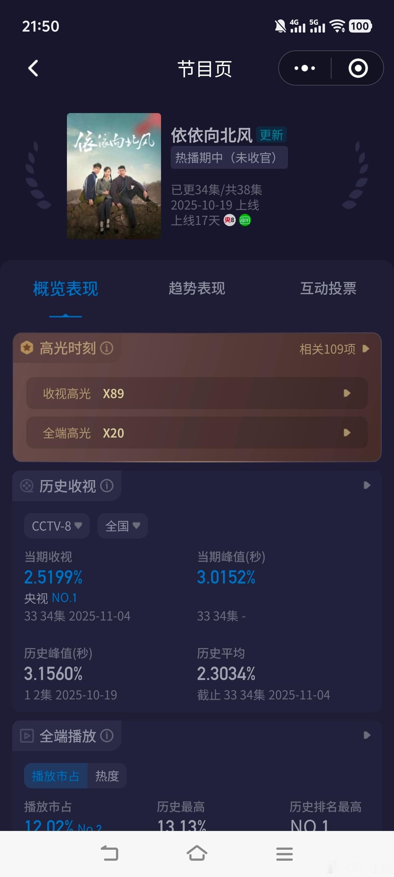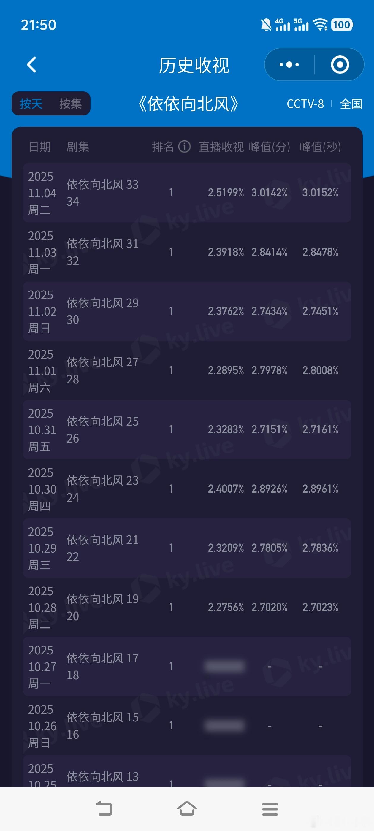 依依向北风今晚酷云实时收视率再次破3,单天平均2.5199创新高!好强!