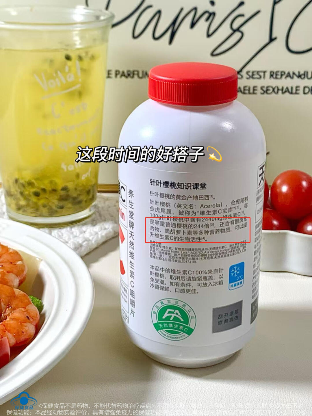 减脂冲刺阶段避免不了运动量变大,工作也避免不了总加班熬夜,饮食上为了控卡,减脂餐里的蔬果量其实摄入不够,时间一长很难不影响身体的体抗力,稍微有点温差就容易不舒服,整个人也没什么精神。 这个🍒养生堂天然维生素C,ta是有增强免疫力的功能认证的,这不正好能帮上忙嘛! 原料100%自巴西针叶樱桃,不添加人工合成VC、人工色素和防腐剂,就像干净饮食一样,是健康习惯的自然延伸。酸酸甜甜的像小零食,一点不麻烦。毕竟又要扛住运动量,又要对付熬夜后的疲惫,有ta帮忙补补VC提高抵抗力,整个人状态也会更稳更好~