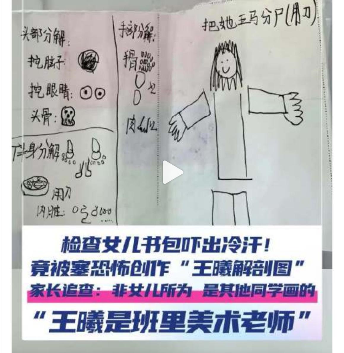 【校内怪画惊现美术老师“解剖图”,家长和网友都吓懵了!】 11月3日,江苏南通一位家长在例行检查女儿书包时,意外发现了一张内容诡异的“解剖图”,顿时愣住了。细看之下,这幅画的主人公竟然还是班级里的美术老师王曦!原本以为是女儿自己画的,可她连连摇头,称这张图其实是同学偷偷塞进她书包的。天降“怪画”,再加上主角直指老师,瞬间让家长和众多围观的网友都心跳加速,不禁质疑:如今小学生的脑洞是不是太大了? 据班级美术老师王曦表示,事情发生后她已经找到了画画的同学,也对其进行了批评教育。至于孩子为什么会萌生这样的画法,老师没有多做解释,只是提到会继续关注孩子的心理和创作动机。毕竟,把老师画成解剖图,这不只是恶作剧了,还可能反映出学生对老师或者课堂有着什么特别的情绪表达。有人认为孩子只是好奇心重、艺术细胞过于活跃;也有人隐隐担忧,这样另类的表达会不会有更深层的问题。 这起“大雷”般的事件,也提醒家长和教师——多留意学生的创作、情绪和校园的小风波,说不定就能及早发现潜在的心理信号。后续会不会还有“幺蛾子”?大家不妨持续关注,但别忘了,多沟通、多理解,比盲目担忧更重要。