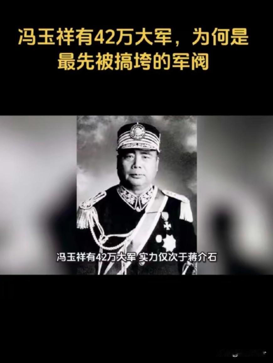 冯玉祥手握42万大军,实力仅次于蒋介石,为何却是最先被搞垮的? 1930年,中原大战结束,冯玉祥从拥兵42万的一方霸主,变成带着千余残兵逃命的败将。这个转变只用了半年,为什么? 因为他犯了军阀混战中最致命的三个错误:把所有本钱压在一次豪赌上,在最穷的地盘上养最多的兵,还把希望寄托在最不可靠的盟友身上。 咱先较真儿说说“最穷地盘养最多兵”这事,这可不是瞎猜,有实打实的史料能佐证。冯玉祥的核心地盘陕甘宁,在民国那会儿就是出了名的贫瘠,农业落后不说,旱灾蝗灾年年闹,老百姓自家口粮都不够,根本刮不出多少油水。 可他非要撑着42万大军的架子,军饷粮草从哪儿来?早年还能靠苏俄的援助补窟窿,1925到1926年苏俄给过三万多支步枪、四百多万发子弹,还有几十门大炮,总价值一千一百万卢布,但这些全是有偿的,得用货币或原料换,运费都得自己掏。后来苏俄援助断了,他只能硬抢,赋税一加再加,有的地方甚至预收好几年的税,士绅们被逼着“捐输”,地方上怨声载道到极点。 西北军看似人多,其实早就被穷地盘拖得没了后劲,这根本不是靠硬撑能解决的问题。士兵们连饭都吃不饱,士气能高到哪儿去?这为后来的溃散埋下了大隐患。 再看那场赌上全部家当的中原大战,冯玉祥的冲动简直致命。1930年之前,蒋介石已经攥住了江浙财阀,手里有的是钱,还顶着“中央政府”的名头,各地军阀表面上都得服软。 可冯玉祥一门心思要“倒蒋”,愣是把西北军主力全拉到中原前线,西北老家只留了些老弱残兵。他觉得联合阎锡山、李宗仁就稳赢,压根没算过双方的实力差距——蒋军有德国顾问训练,还有照明弹这种先进装备,西北军只能靠大刀队夜袭,根本不是一个量级。这种不留后路的打法,简直是把42万弟兄的命当筹码扔出去。 最让人窝火的还是盟友阎锡山,这人的反复无常在史料里都记着。一开始拍着胸脯说要“同心反蒋”,还承诺给西北军管粮饷,结果冯玉祥真出兵了,他却开始藏私 。 1930年6月晋军占了济南,形势明明挺好,阎锡山怕冯玉祥坐大,故意拖着不给西北军补粮草弹药,眼睁睁看着冯部在陇海线被蒋军打垮。更过分的是,他一边跟冯玉祥称兄道弟,一边偷偷派人和蒋介石接触,想给自己留后路,这种盟友能靠得住才怪。 盟友靠不住,蒋介石的“银弹攻势”又正好打在西北军的七寸上。蒋介石知道西北军缺军饷,直接派吴铁城带着三千万巨款去收买冯玉祥的部下,这钱够东北军半年军费,比阎锡山那点小气的承诺实在多了。 冯玉祥最信任的韩复榘、石友三,直接被蒋介石的高官厚禄拉走了,通电拥蒋反冯。冯玉祥得知消息时差点气昏过去,这些人都是他一手提拔起来的,有的从马夫做到师长,结果关键时刻捅刀子 。连被他送去苏联留学的郝鹏举也投了蒋,部队从根上就散了。 后来张学良带着东北军入关拥蒋,反蒋联盟彻底崩盘,冯玉祥想回西北都没退路了。其实他的失败早有预兆,只算兵力账不算财政账、盟友账,军阀混战里这就是找死。42万大军看着唬人,没有稳固的后勤、靠谱的盟友,再加上内部被挖墙脚,不垮才怪。 各位读者你们怎么看?欢迎在评论区讨论。