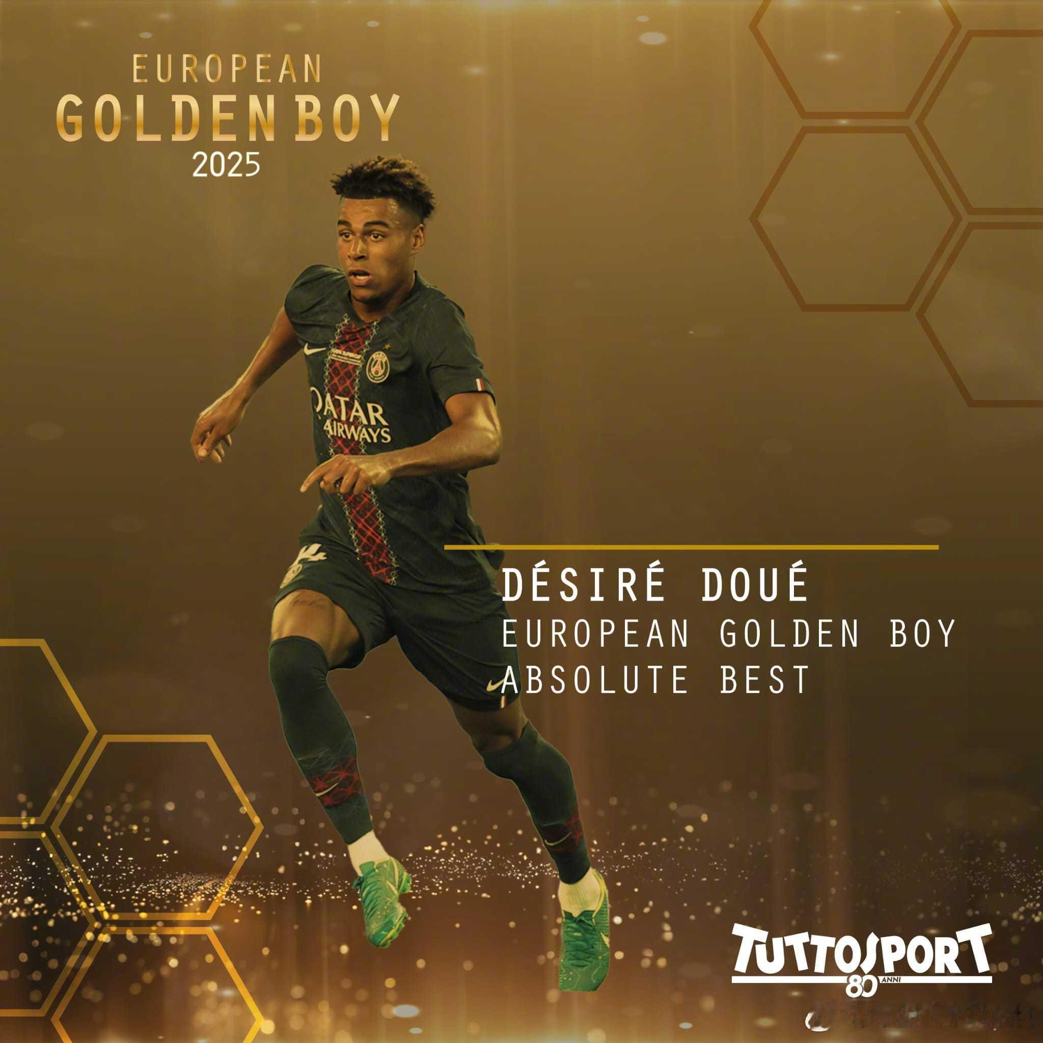 🎖金童奖官方宣布巴黎圣日耳曼前锋杜埃获得2025年金童奖。