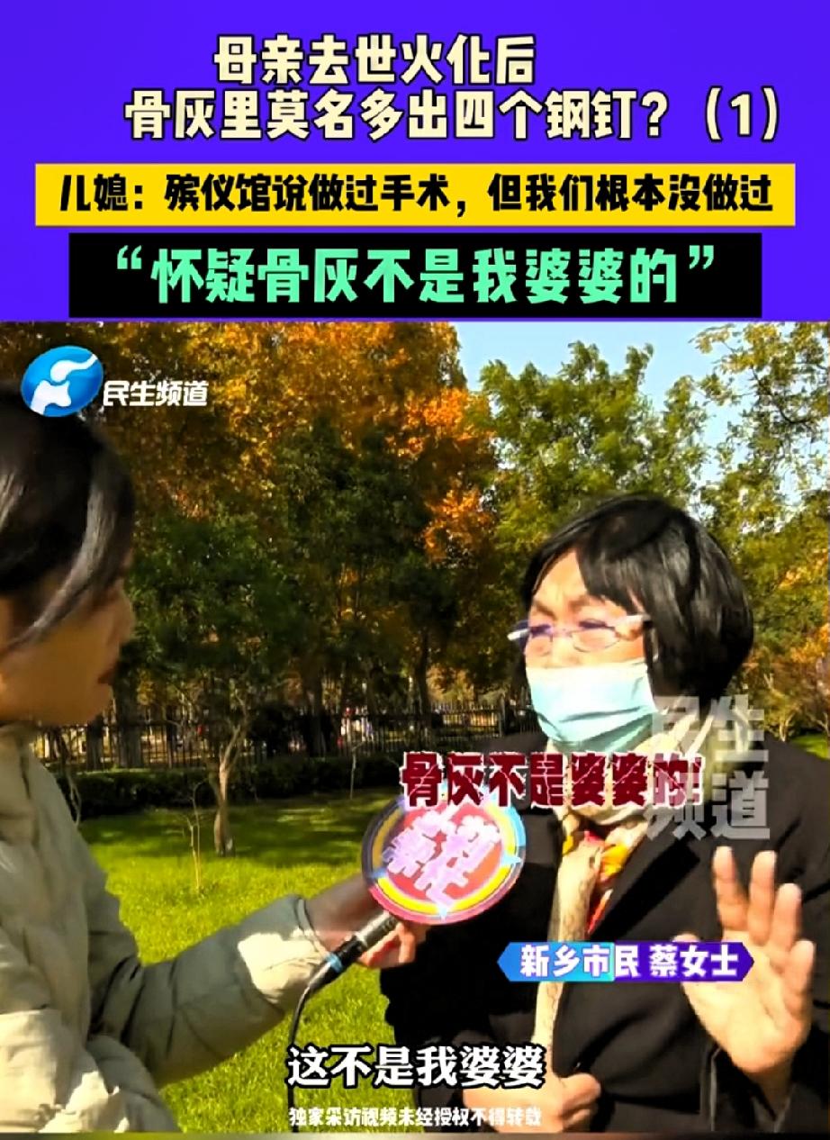 最该肃穆的地方,上演了最荒唐的戏。 河南新乡,一位老人走完人生最后一程,家属捧回的骨灰里,却赫然躺着四枚冰冷的钢钉。家属手握医院开具的“无手术史”铁证,核磁共振报告也清清楚楚地证明逝者体内绝无金属。然而,面对这一切,殡仪馆的工作人员却选择了最令人心寒的应对——睁眼说瞎话,死不承认。 当家属要求查看监控,那本该还原真相的录像,却疑点重重。画面中三具遗体同时火化,而家属看到的视频又被指“人为删减”。真相,仿佛被一层迷雾笼罩,只留下一个更深的疑问:这捧骨灰,究竟是谁的? 这已经不是简单的疏忽,而是对逝者最后的践踏,对生者情感的凌迟。老伴的悲愤追问,换来的却是冰冷的狡辩。当连“入土为安”这个最基本的愿望都变成一种奢望,我们失去的,又何止是一捧骨灰? 这场荒唐的戏,拷问的不仅是新乡这一家殡仪馆的良知,更是整个行业流程的规范与监管的底线。当生命的终点都可以如此随意地被混淆、被篡改,我们每个人,都可能是下一个在迷雾中寻找亲人骨灰的家属。这,才是最深的恐惧。