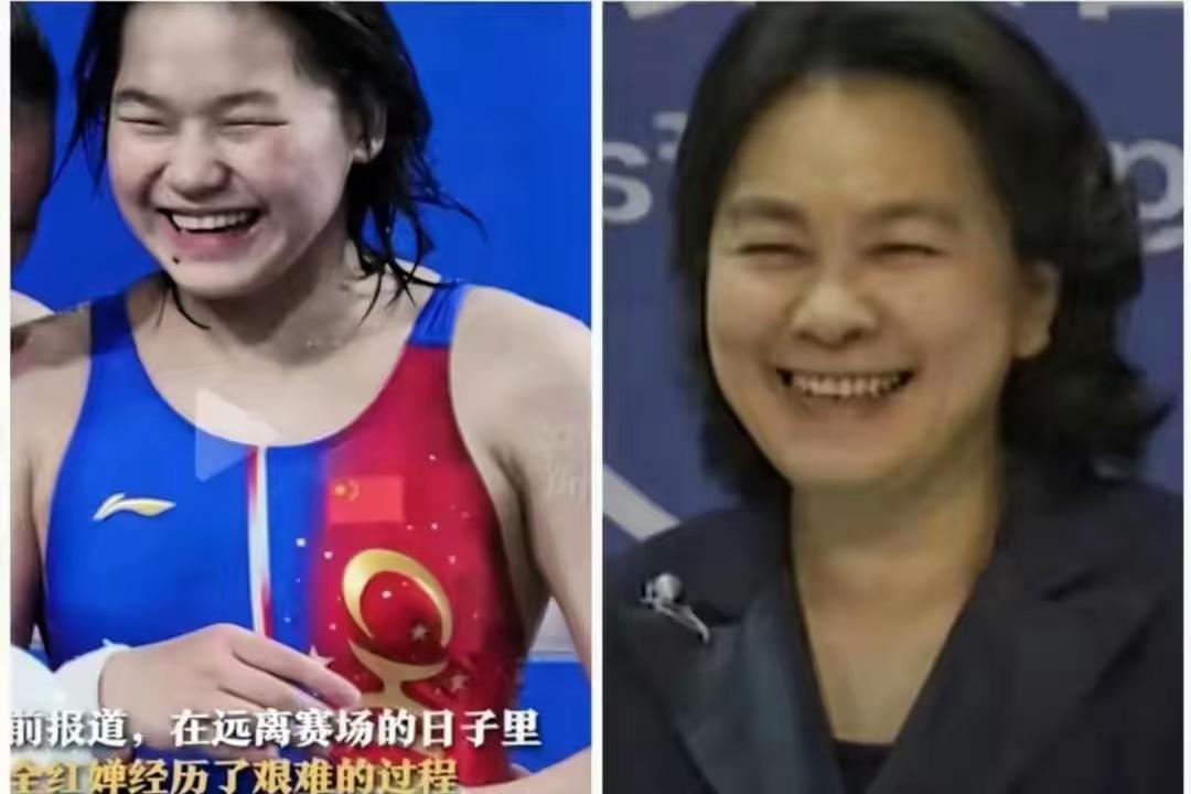 不止全红婵没想到, 就连华春莹本人也没想到! 全红婵时隔183天重返跳水台再次参加比赛,表现依旧一如既往的优异,一举夺冠,在颁奖时,网友也是意外发现婵宝的笑容竟然和华春莹一模一样!不能说一模一样,只能说高度相似! 最先把这两张笑容照片放在一起对比的,是一位常年关注跳水赛事的老粉丝。他截下全红婵领奖时咧嘴笑的瞬间,又找出华春莹公开活动中的微笑画面,发到网上后直接炸了锅。 短短两小时,这条对比帖的转发量就破了10万。有网友调侃“这是不是跨越领域的‘微笑基因共鸣’”,还有人仔细数了两人笑起来时眼角的细纹,连弧度都几乎重合。 全红婵赛后接受采访时,被记者问到这个话题,小姑娘先是愣了一下,接着不好意思地挠挠头:“我没见过华老师本人,但听大家说像,还挺开心的。”那股子直率劲儿,和照片里的笑容一样招人喜欢。 华春莹这边,也有媒体在例行记者会上提及此事。她闻言莞尔,温和地回应:“全红婵是很优秀的年轻运动员,她的拼搏精神值得所有人学习,能被说笑容像,是我的荣幸。” 其实大家喜欢这组“撞脸笑容”,不只是因为表面的相似。全红婵的笑里,有少年人夺冠后的纯粹与骄傲;华春莹的笑中,有外交场合里从容与坚定,两种笑容都藏着让人动容的力量。 再看全红婵这次回归赛场的表现,10米跳台上的每一个动作都精准得像尺子量过。最后一跳拿到满分时,全场观众的欢呼差点掀翻场馆,她却只是轻轻握拳,笑容里没有张扬,只有踏实的底气。 而华春莹在外交舞台上,面对各种提问始终从容不迫,用专业和智慧维护国家形象。她的笑容里,藏着的是对工作的敬畏、对责任的担当,和全红婵对跳水的热爱本质上是一样的。 现在网上还在热议这组“神仙笑容”,有人说这是“不同战场同样精彩”,也有人说看到这样的笑容就觉得心里暖。其实不管是赛场还是外交场,认真做事、用心生活的人,笑容都自带感染力。 各位读者你们怎么看?欢迎在评论区讨论。跳水冠军婵 全红婵语录