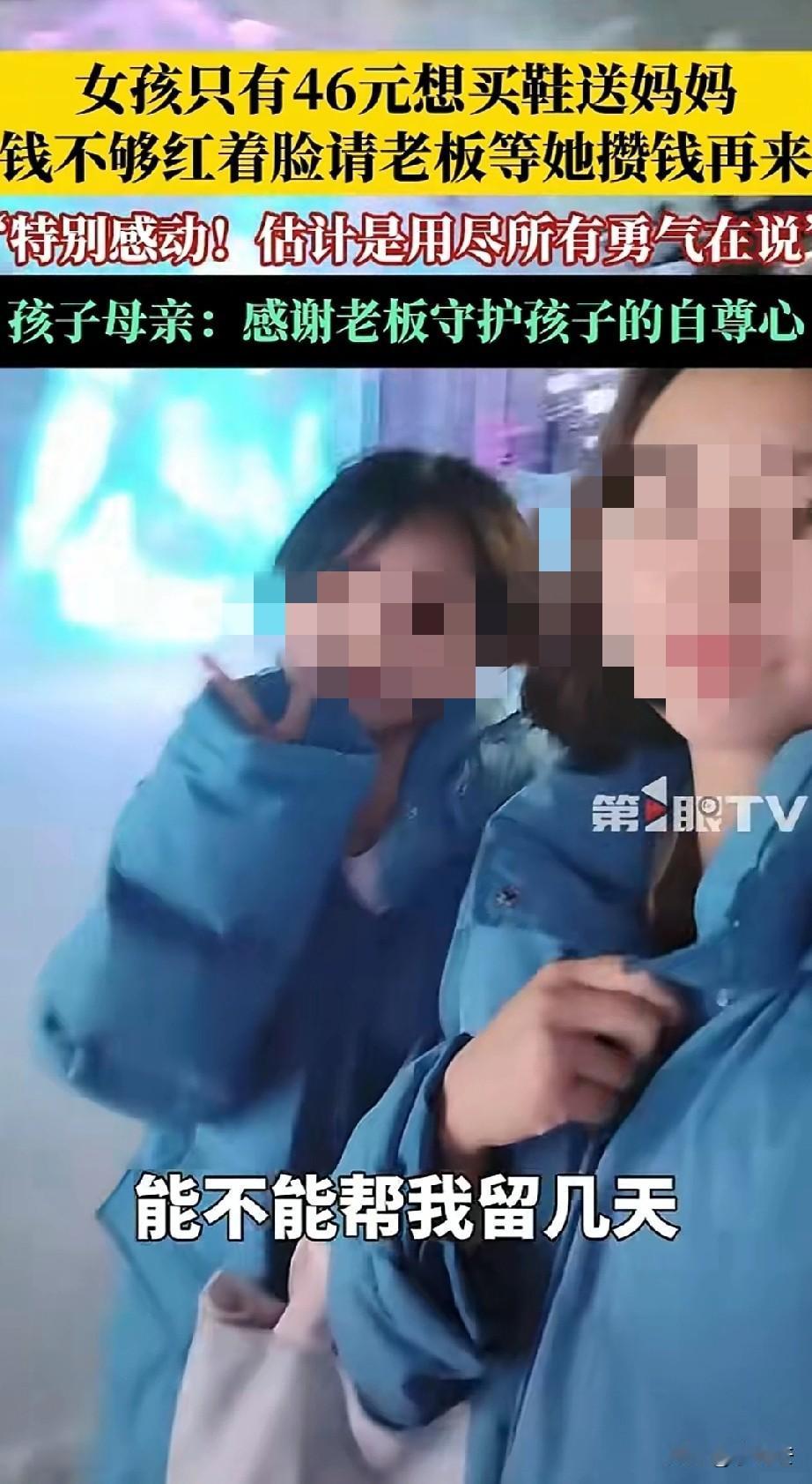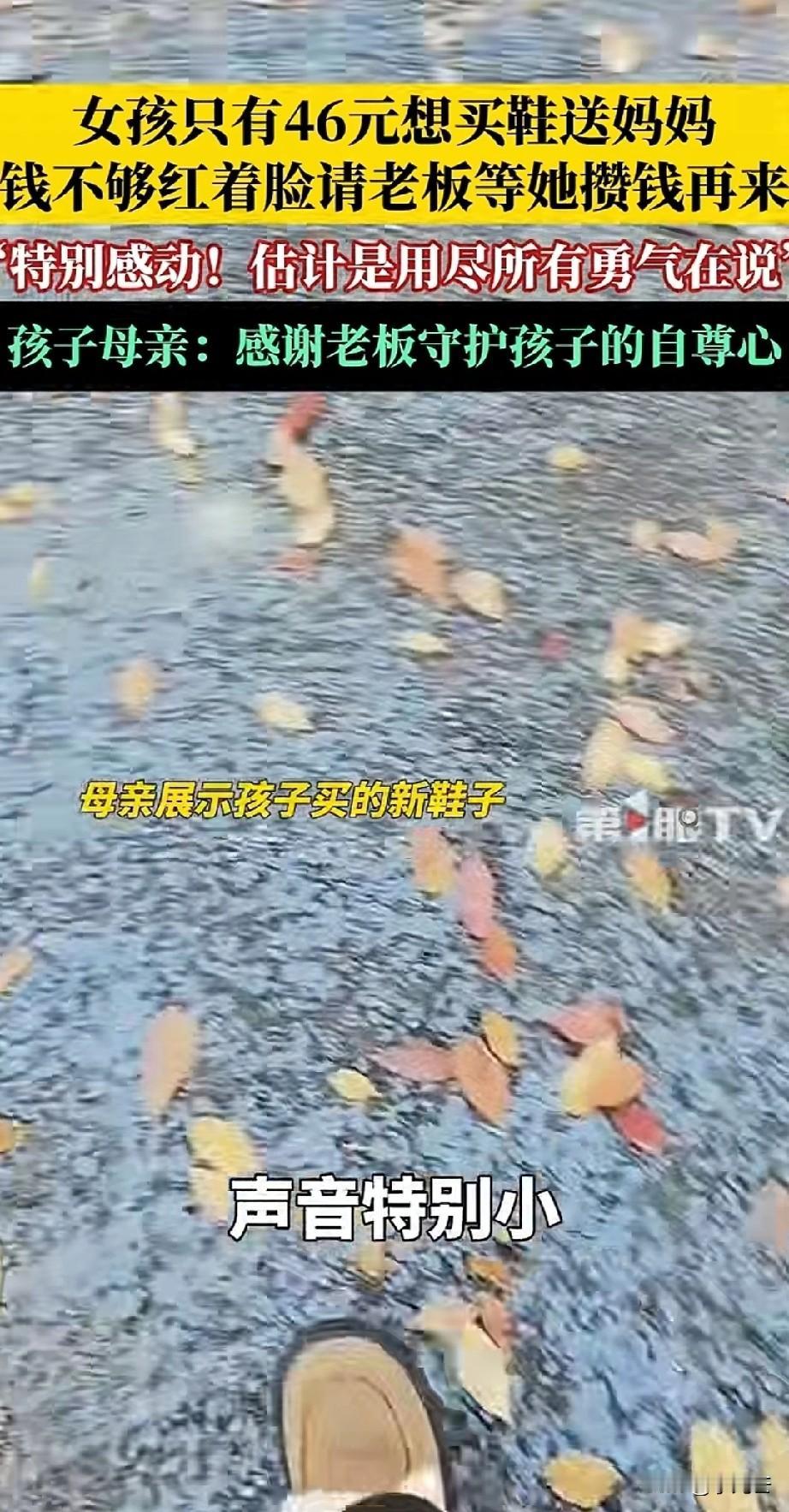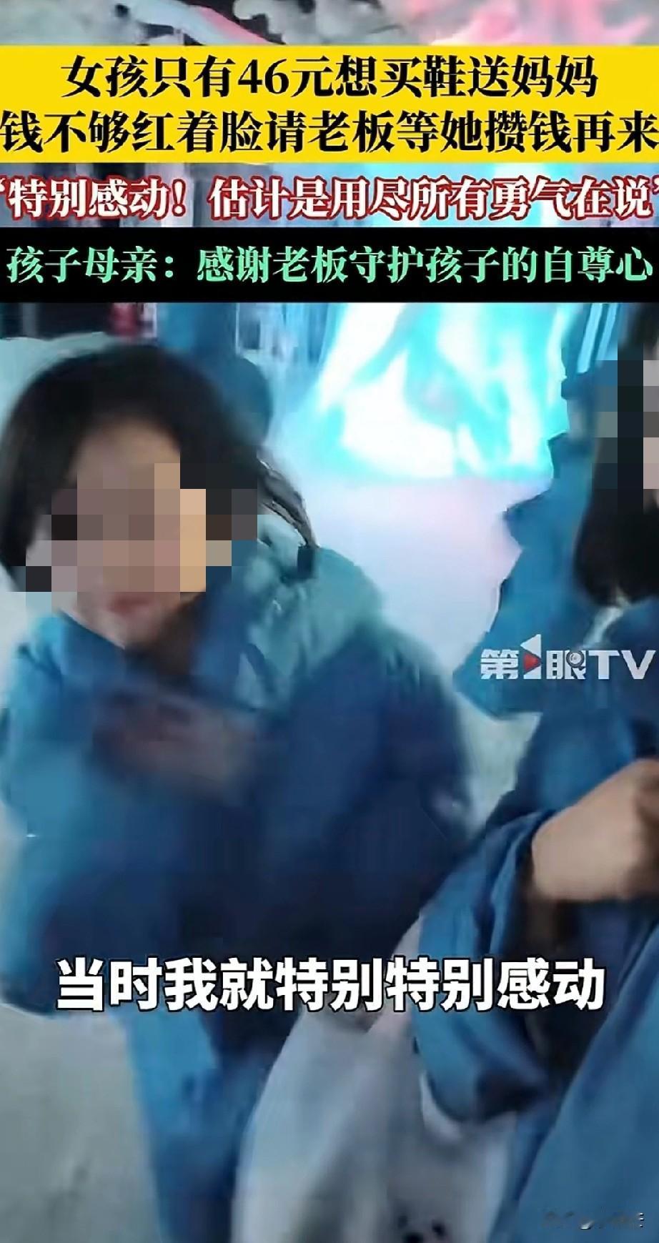 “懂事的小棉袄!”女孩浑身凑了46元去给妈妈买生日礼物,仔细的挑了一双靴子,反复试了好几次。因为带钱不够,脸色窘迫的和店主商量,“阿姨,可不可以帮我把鞋子留几天,我凑够了钱就来买!”店主感动不已,159的鞋子只收46元卖了,只为成全女孩的孝心! 湖北一店主发视频,一个小女孩进店就问,有没有她能买的起的鞋子,就不超过50块钱的,因为妈妈过生日,她想送妈妈一双鞋。店主就让她自己选。 她给妈妈选了一双加绒靴子,还自己试了好几回,鞋底硬不硬,走路舒不舒服。后来拿起鞋子看到了鞋底的价格,小姑娘站在那犹豫了很久,把鞋子放了回去。 然后走到店主面前,很小声谨慎的说,阿姨,那双鞋子可不可以给我留几天,等过凑够了钱就来买!因为她全身只有46元,那而双鞋是159! 女店主耐心听完小女孩的话,女孩脸特别红,声音特别小,用尽了所有的勇气来说这件事。店主十分感动,只收了46元就卖给了她。女孩走的时候脸还是很红,但是蹦蹦跳跳的拿着鞋子,十分开心。 事后妈妈也在店主视频下评论,感谢店主守护了女儿的自尊心,妈妈说女儿比较腼腆,平时很社恐,也很惊讶女儿能做出这么感动的事。 可能在女儿看来,虽然自己不善言辞,不敢与大人交流,但是为了妈妈的鞋子,可以鼓起所有的勇气。 女店主支持了女孩的孝心,更保护了她的自尊心,这件事也会让女孩记好久,以后会有更多的勇气做事情。 倘若当时女店主直接把她赶出来,或者没有钱就不买,训斥小女孩,估计她很久都不敢再和大人交流,也不敢勇于表达自己的想法。 比更46元的鞋子,更值得赞扬的是女店主没有因为她是一个小孩子就忽视她,反而细心的保护了女孩的自尊,这将是童年世界的一道光,滋养萌生出的勇气!