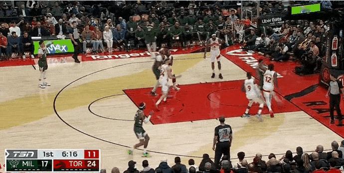 雄鹿内线巨兽字母哥简直太猖狂了!在今日雄鹿对阵猛龙的第一节比赛中,字母哥篮下迎着
