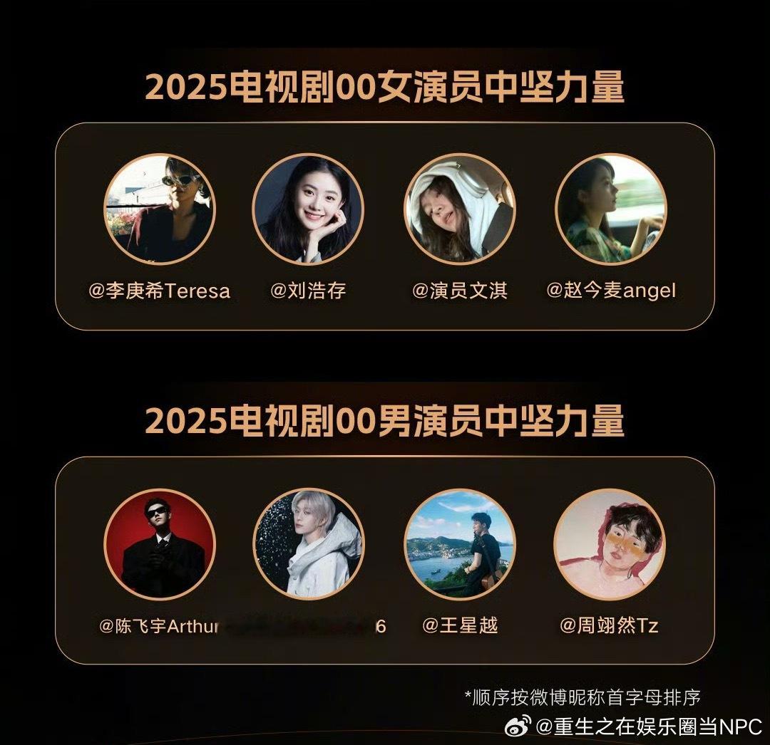 新浪选出的2025年内娱中坚力量演员没有赵露思虞书欣就算了,咋王一博也没有
