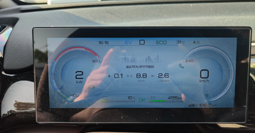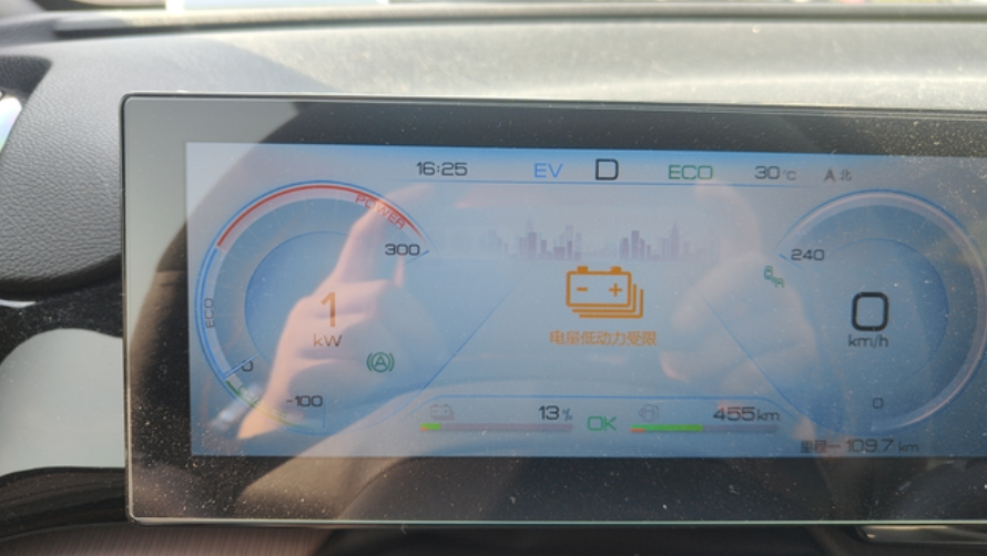 宋pro DMI,强制EV到14%的电,快充到80%(快充约15元),特意记录了一下电耗,全程109.7km,上午凉爽未开空调,下午开空调25度(约60km), 强制EV到13%的电。特意用了黄金右脚,控制瞬时电耗,也就是67%的电跑了109.7km,里程达成率还是蛮高的。