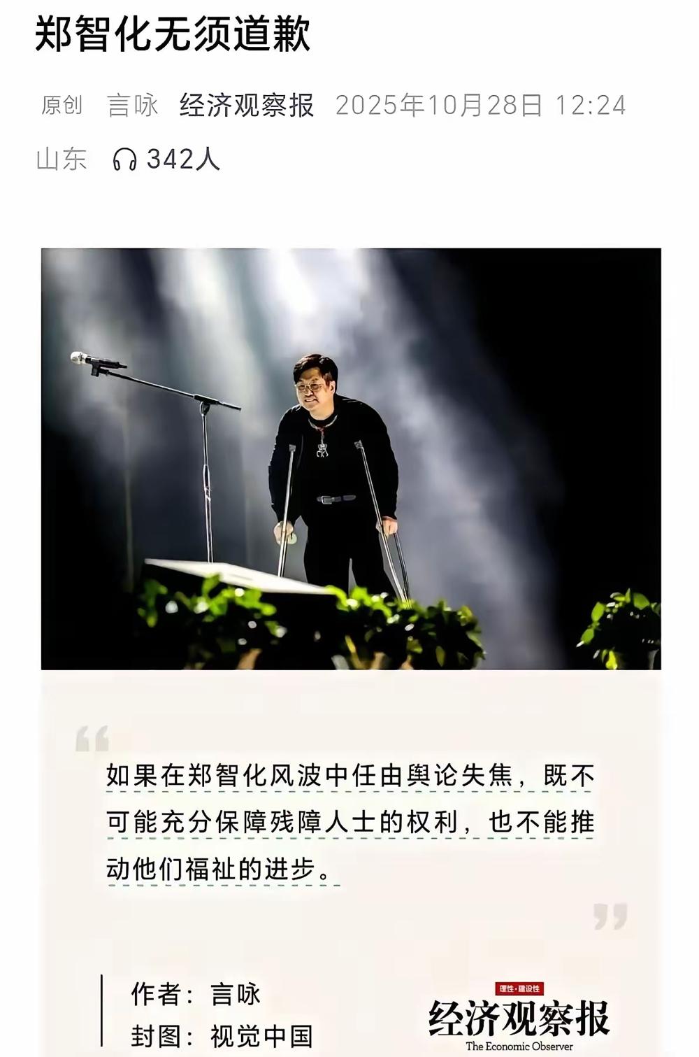 郑智化那事儿,吵来吵去,我算是看明白了。 说白了,就是几个空乘人员,费劲巴拉地又是抬又是扶,把他弄到了座位上。结果人家不满意,觉得没尊严,说应该有全套的无障碍设施,让他自己“走”过去。 这话听着特对,是吧?谁不想要尊严啊。 但凡事就怕琢磨。 为了他这种腿脚不便的,飞机上得配一套升降设备吧? 那下次来了个盲人旅客,是不是得配一套全程语音导航加盲文说明书? 再下次,要是来个别的更特殊情况的呢? 一架飞机,难不成要改成变形金刚?为了那万分之一都不到的可能性,塞满各种可能一辈子都用不上一次的设备。 这些成本谁来出? 航空公司吗?羊毛出在羊身上,最后还不是摊在咱每一个普通人的机票里。 我就觉得,有时候咱们把“善良”和“体面”想得太复杂,太昂贵了。 真正的善良,就是那几个工作人员,二话不说弯下腰,搭把手,用最笨拙也最直接的方式,解决了眼前的麻烦。这是人与人之间最朴素的热气儿。 而非要站在一个道德制高点,要求一个完美的、不计成本的、绝对正确的方案,然后让整个社会为某一个人的“体面”买单,那不叫善良,那叫自私。 真正的体面,从来不是要求世界为你铺好一条完美的红毯。 而是当路上有块石头绊了你一下,有人愿意停下来,朝你伸出手。