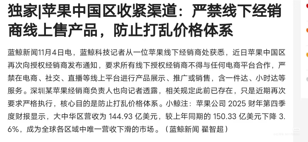 苹果收紧中国区销售渠道防止价格体系混乱[doge]