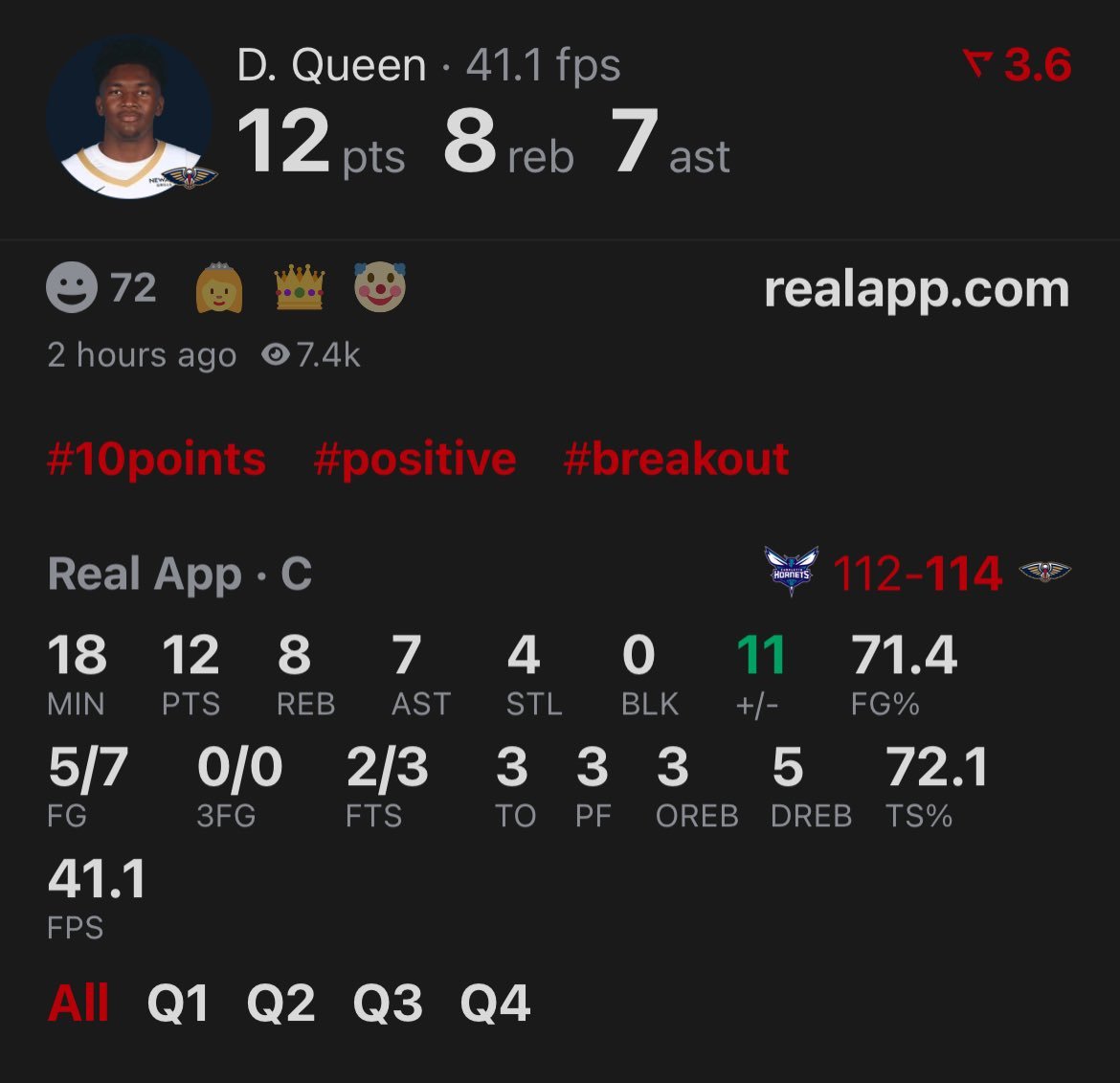 今天奎因替补登场18分钟,得到12分8篮板7助攻4抢断。