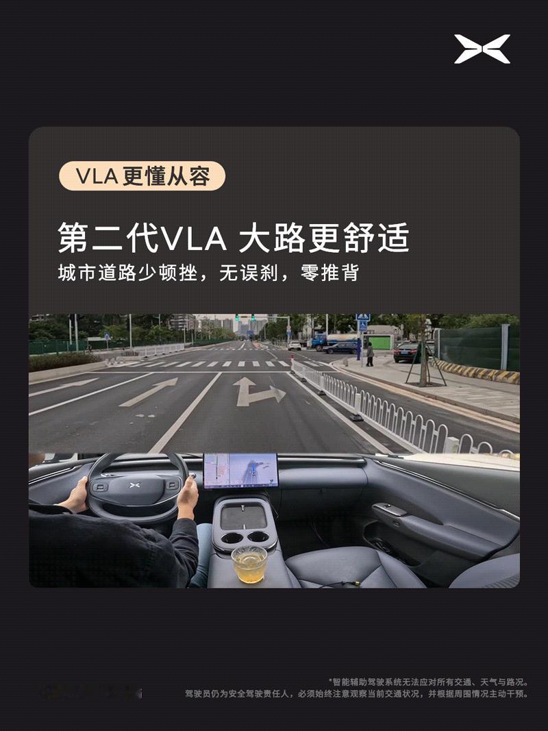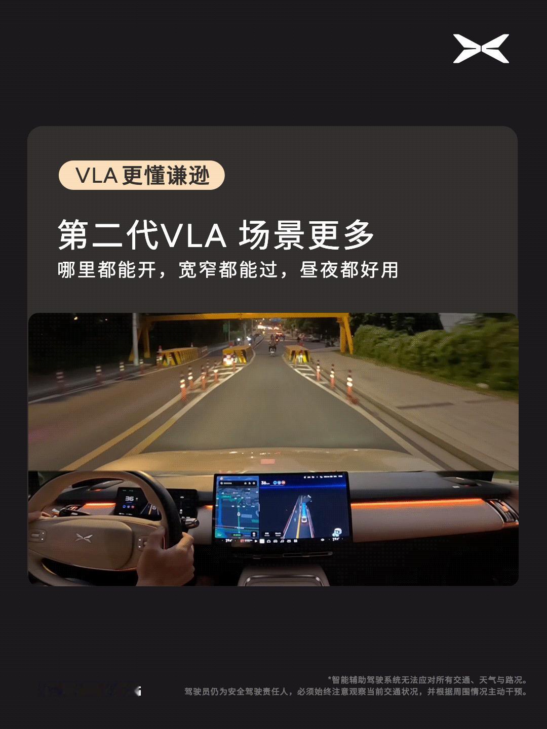 小鹏汽车官宣的第二代VLA大模型说更高效、反应更快,做到“小路更强悍,大路更舒适,场景更全面,丝滑贯通不同路况”,号称“小路之王”