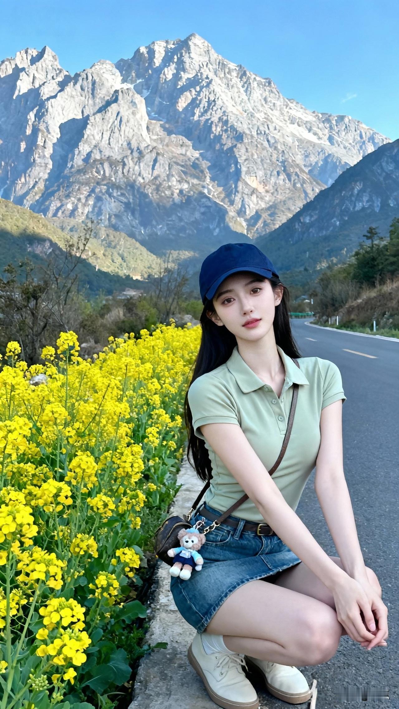 🌿春日奔赴山海花海,怎么穿才能既舒适自在,又能随手拍出清新大片?这套“休闲感+轻甜感”的搭配可以抄作业! 浅豆绿polo衫简约又显白,贴身版型勾勒利落线条,休闲随性还带着几分复古腔调;搭配高腰牛仔短裙,瞬间拉满青春活力,爬山、逛景、走公路都毫无束缚感~ 藏青色棒球帽是造型“加分项”,遮阳又时髦,为整体穿搭注入随性腔调;斜挎包挂上萌趣小熊挂饰,细节里的可爱感直接拉满,让穿搭不再单调!鞋子选米色乐福鞋或休闲鞋,舒适好走,各种路况都能轻松hold住。 当山峦叠嶂的壮阔与金灿灿的花海同框,这套穿搭就是“氛围感催化剂”!春日暖阳下,在山间公路旁静坐,或在花田边轻蹲,清新治愈的旅行大片随手就能get~ 💡旅行穿搭小tips:用基础款打造清爽层次感,再靠配饰点亮风格,舒适与颜值双在线,才能尽情拥抱旅途的每一处风景呀~怎么样的穿搭才够时尚 休闲度假怎么穿 旅行穿搭 春日穿搭 出游穿搭 穿搭灵感 旅行拍照