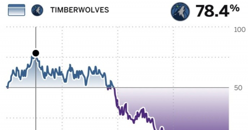 湖人首战森林狼,森林狼获胜概率一度高达78.4% 四连胜期间,湖人次战森林狼,对手获胜概率一度高达86.6% 四连胜期间,湖人战灰熊,对手获胜概率一度高达90.2% 四连胜期间,湖人战开拓者,对手获胜概率一度高达91.4% 湖人赢下全部四场的概率仅有0.02%!