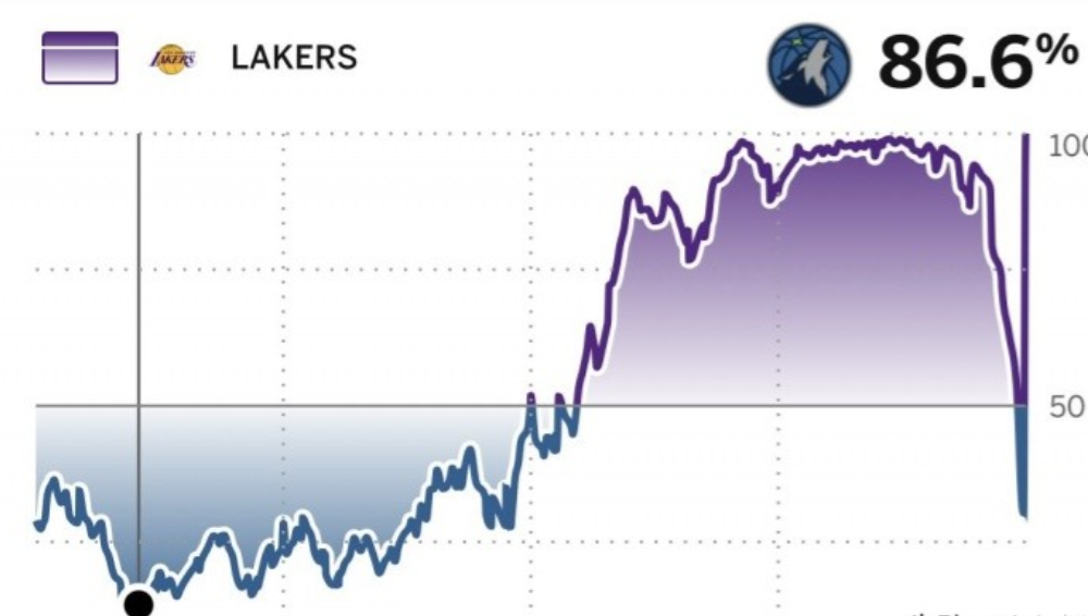创造奇迹!昨日湖人胜率一度低至8.6% 四胜强敌的概率仅有0.02%!