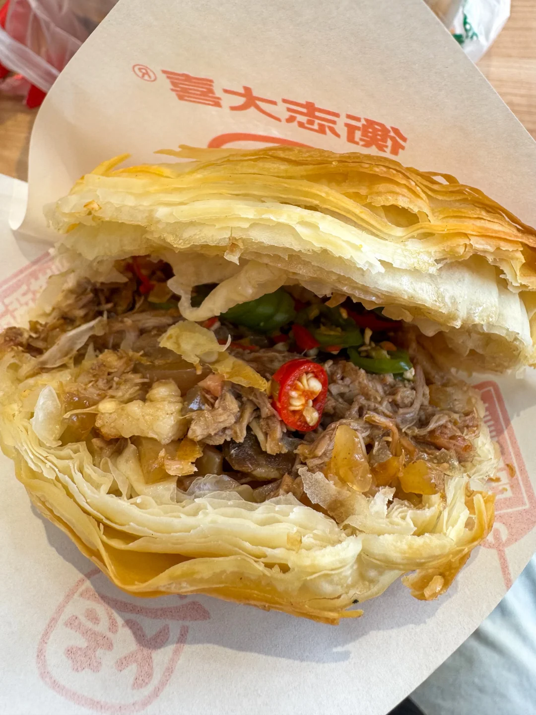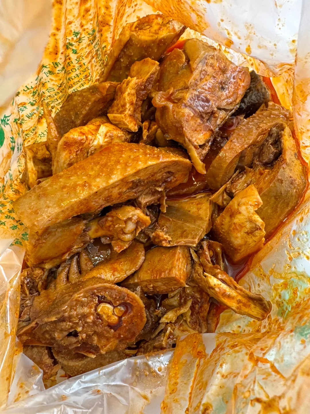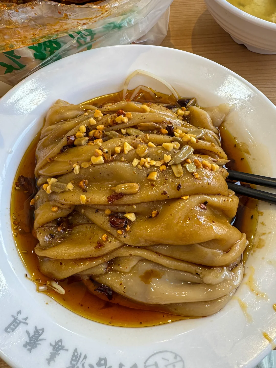 麻辣鸡还是热米皮? 肉夹馍全瘦还是肥瘦? 麻辣鸡是王虎麻辣鸡,热米皮在麻辣鸡隔壁的隔壁,哦对,差点忘了角落里的热豆腐!