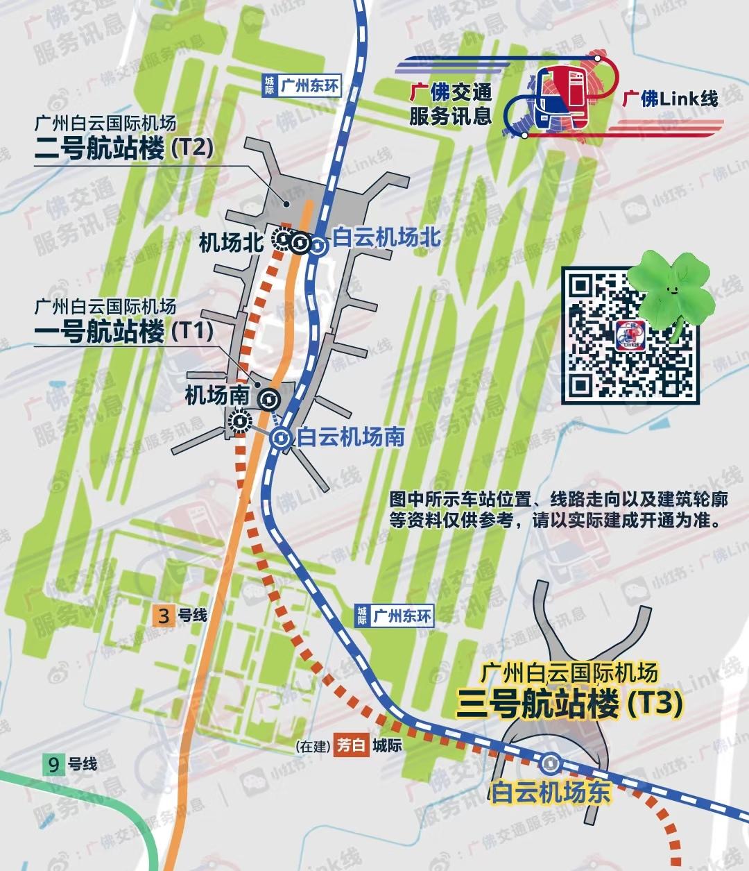 暂无地铁的白云T3,去机场预留更长出行时间 但不同于先前T1和T2能够选择广州地铁 作为来往机场和市区的快捷不塞车的选项,T3的接驳地铁路线——芳村至白云机场城际(芳白城际,即地铁22号线的北延段)无法与航站楼同步开通。若要乘坐地铁前往T3,转乘接驳巴士就成了必选项。 T3启用时,目前在T1、T2穿梭的24小时运营免费穿梭巴将会延长至T3,届时大家可搭乘地铁至机场南站,出站前往T1出发层的12号门转乘;或选择地铁机场北站,前往T2出发层42号门乘车。此外,机场方面也会新增一条由地铁高增站来往T3的公交线路,约15至20分钟一班车,车程约为15分钟。