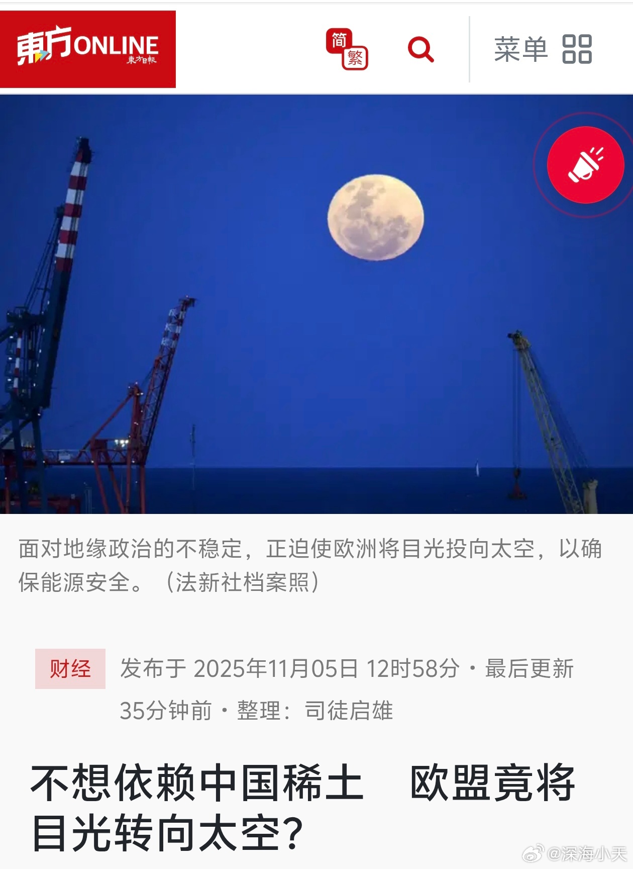 美媒称,中国试图将其在稀土矿产的主导地位“武器化”,正迫使欧洲将目光投向太空,以确保能源安全,欧盟正考虑开采月球的干净能源资源。