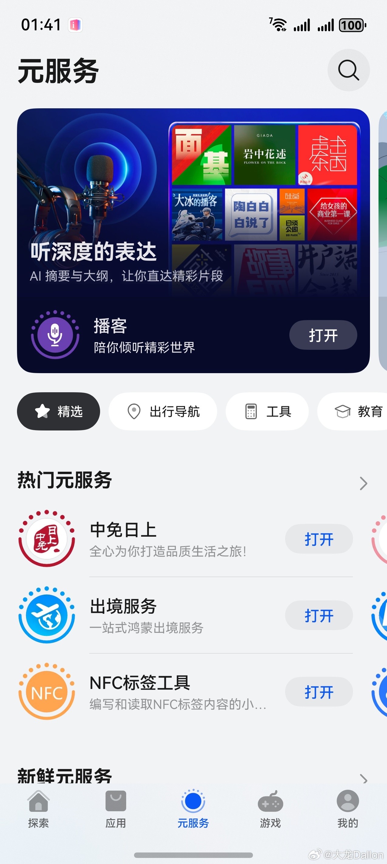 目前元服务更多还是在一些工具类型的应用,例如某某扫描王,你不需要在下载第三方就可以用,或者播客可以直接收听。