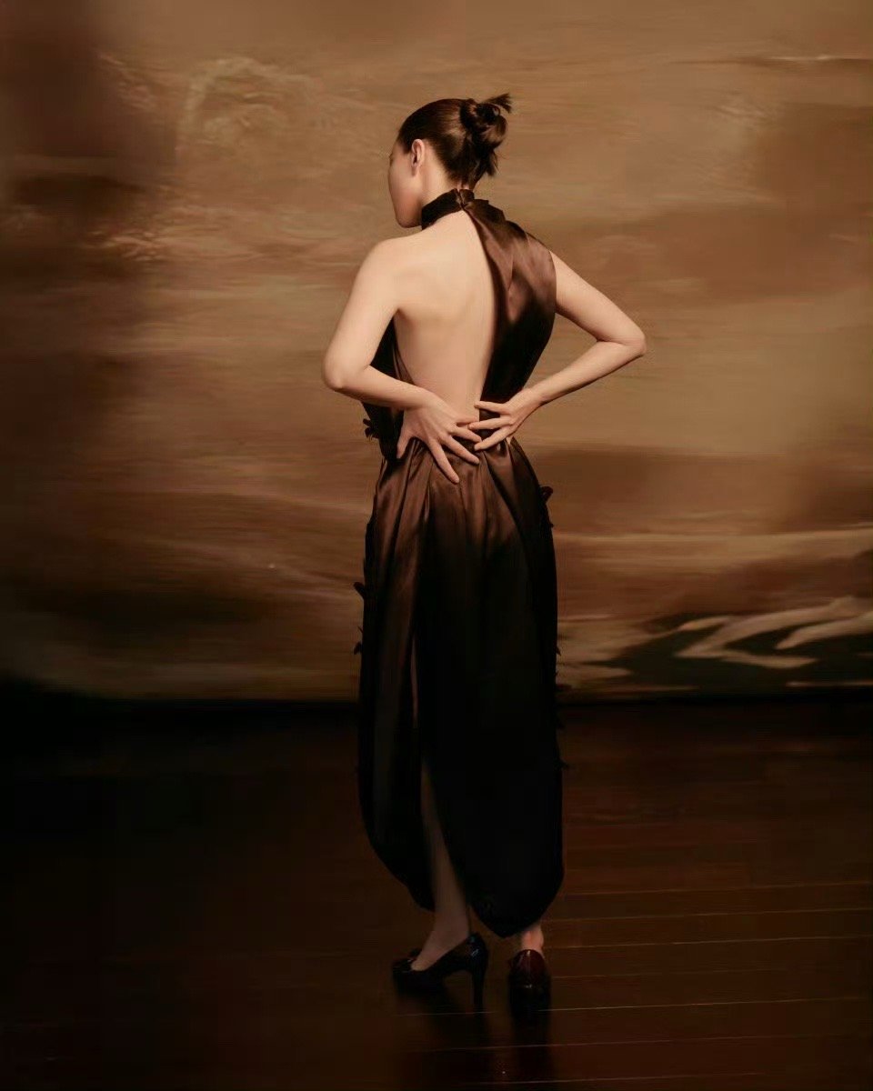高圆圆羽毛裙造型高圆圆背部线条好优越 露背设计太会了!灵动羽毛+流畅背线,美到移不开眼[哇]