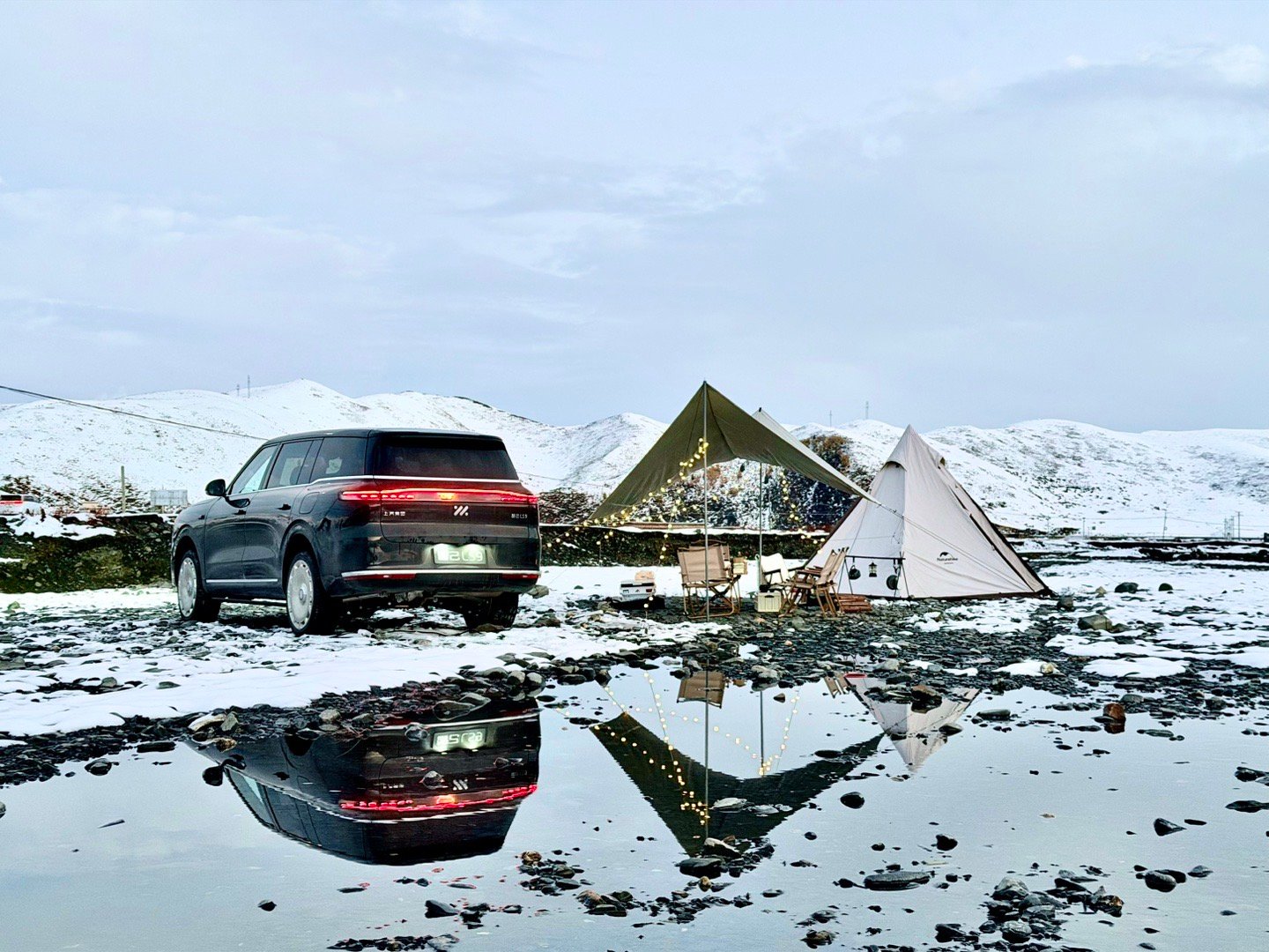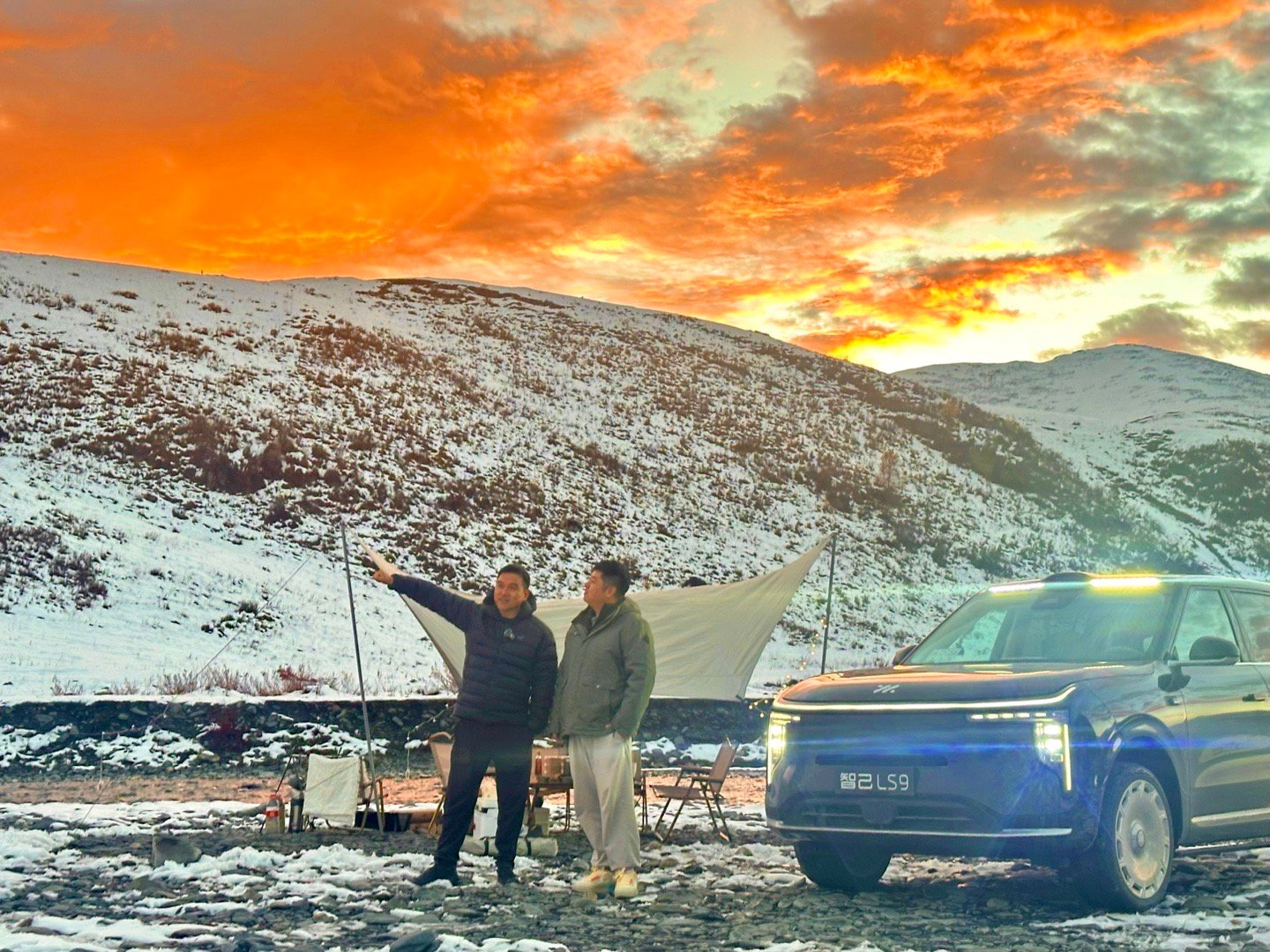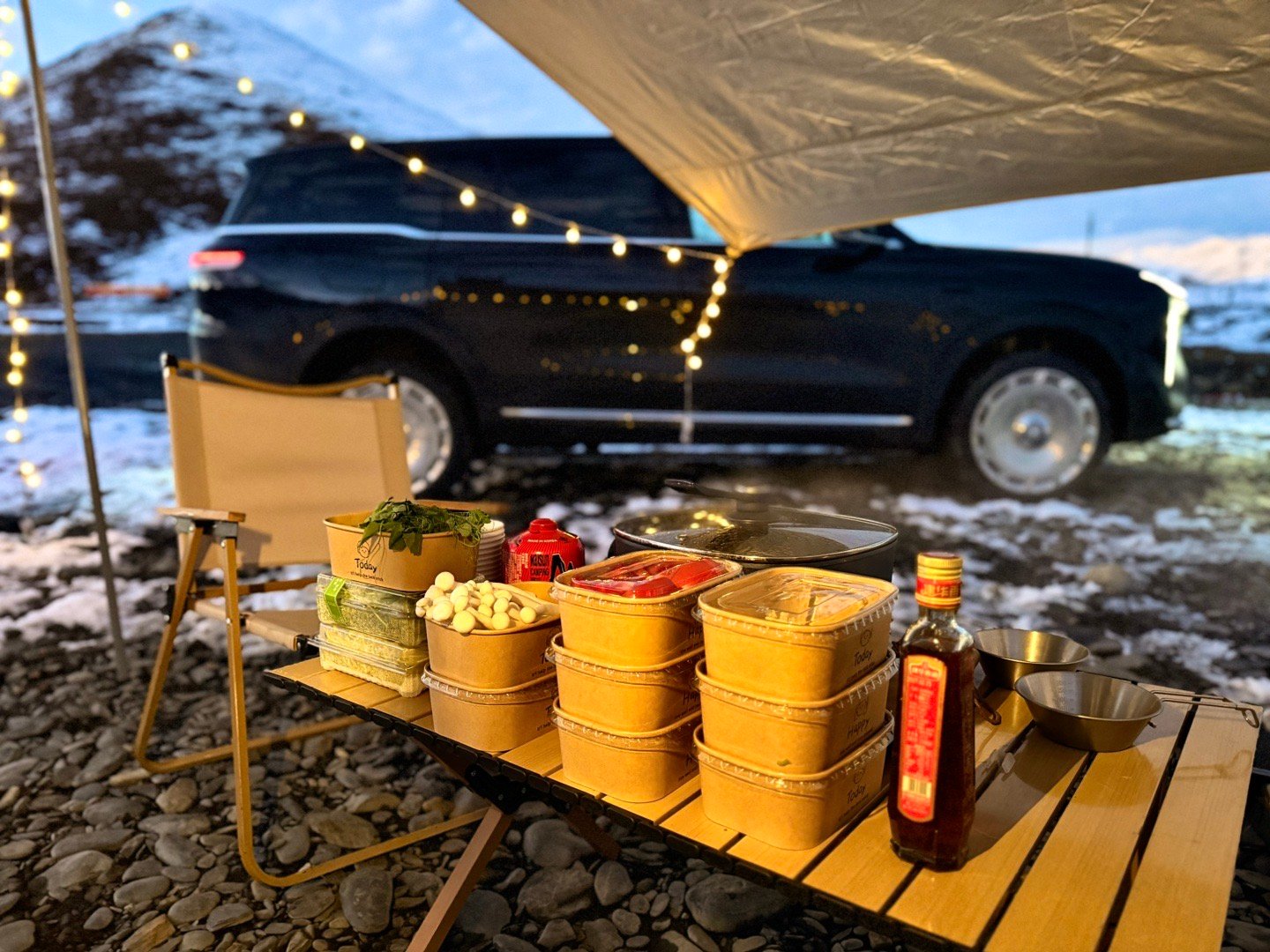 海拔3800m,雪山脚下,夕阳西下,吃着火锅唱着歌。