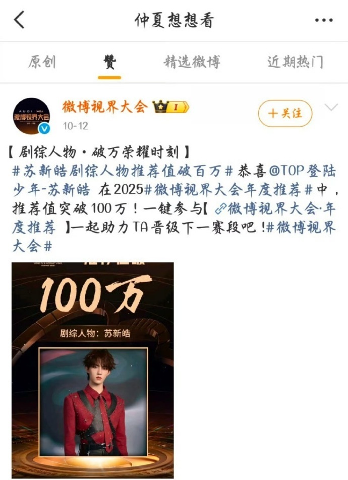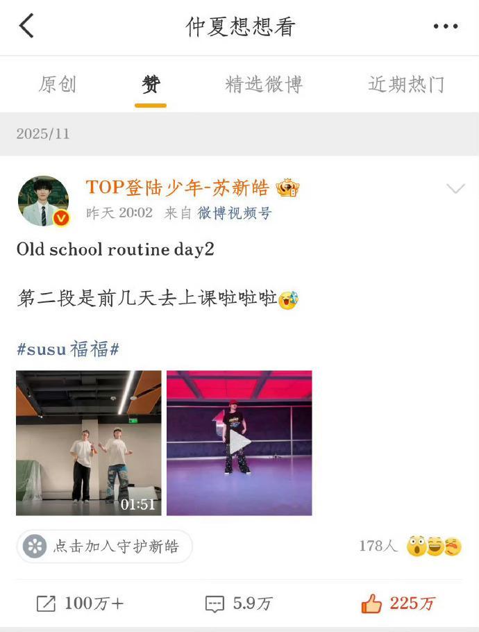 被《天赐的声音》导演孙竞盖章认可的舞台实力!多次点赞苏新皓跳舞微博还特意分享单人内容,这份偏爱藏都藏不住~ 少年的舞蹈既有干净利落的技术功底,又有“转身即心痛”的共情张力,难怪能打动追求“真实共鸣”的导演。期待小苏解锁音综外务,在专业舞台上绽放更多光芒,用实力收割更多认可呀!