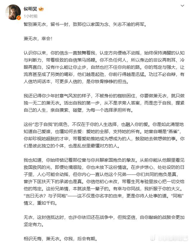 侯明昊萧无衣你我后会有期 《雀骨》终于杀青了,侯明昊和萧无衣相识无悔,你我后会有期!完全就是期待值拉满侯明昊和萧无衣相识无悔