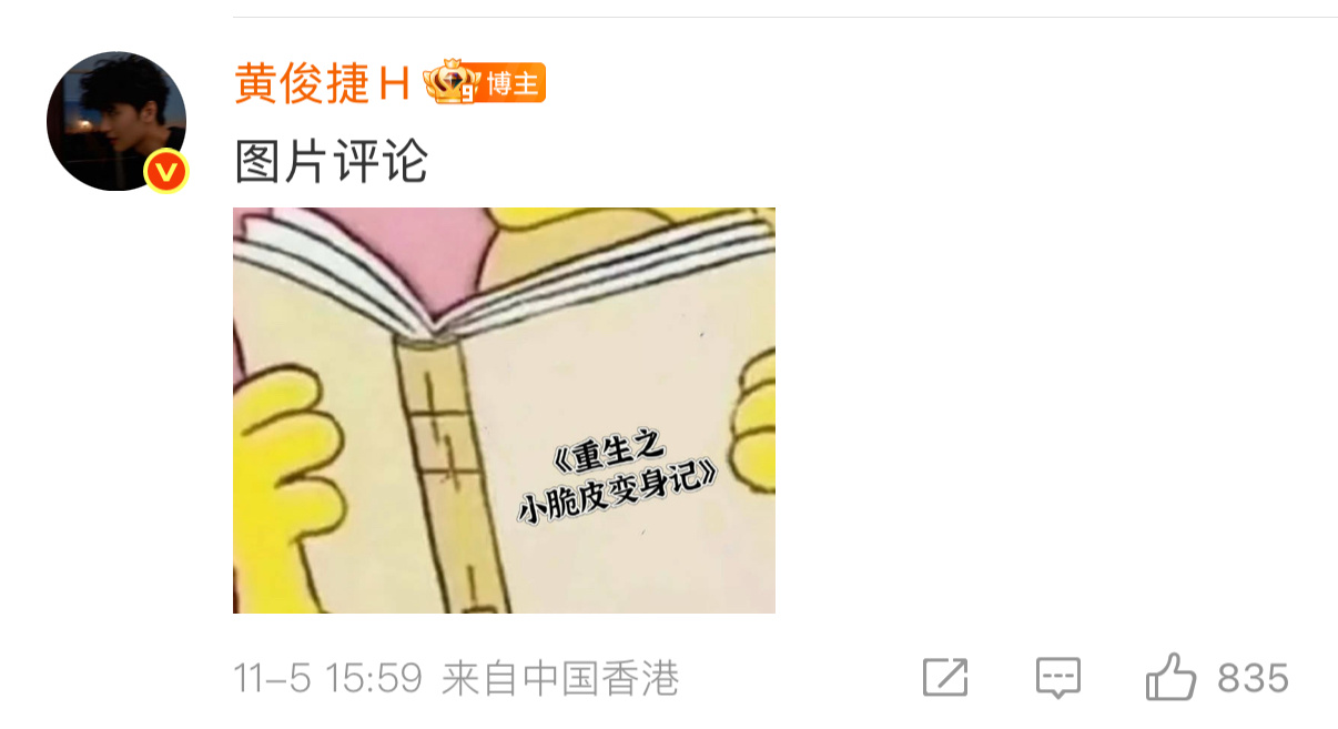 黄俊捷说自己是小脆皮黄俊捷刚在微博评论区甩出自带“小脆皮55555”的可怜表情