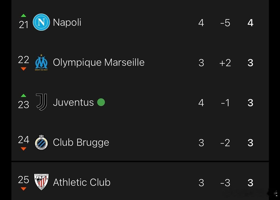欧冠第4轮首个比赛日,意甲球队的表现有些拉胯,那不勒斯4轮4分排名21,尤文图斯4轮3排名23。[哈欠][哈欠][哈欠]