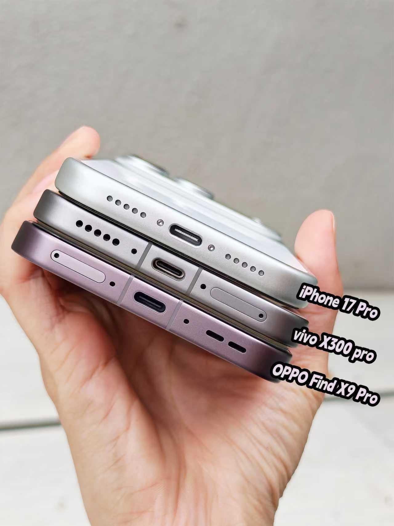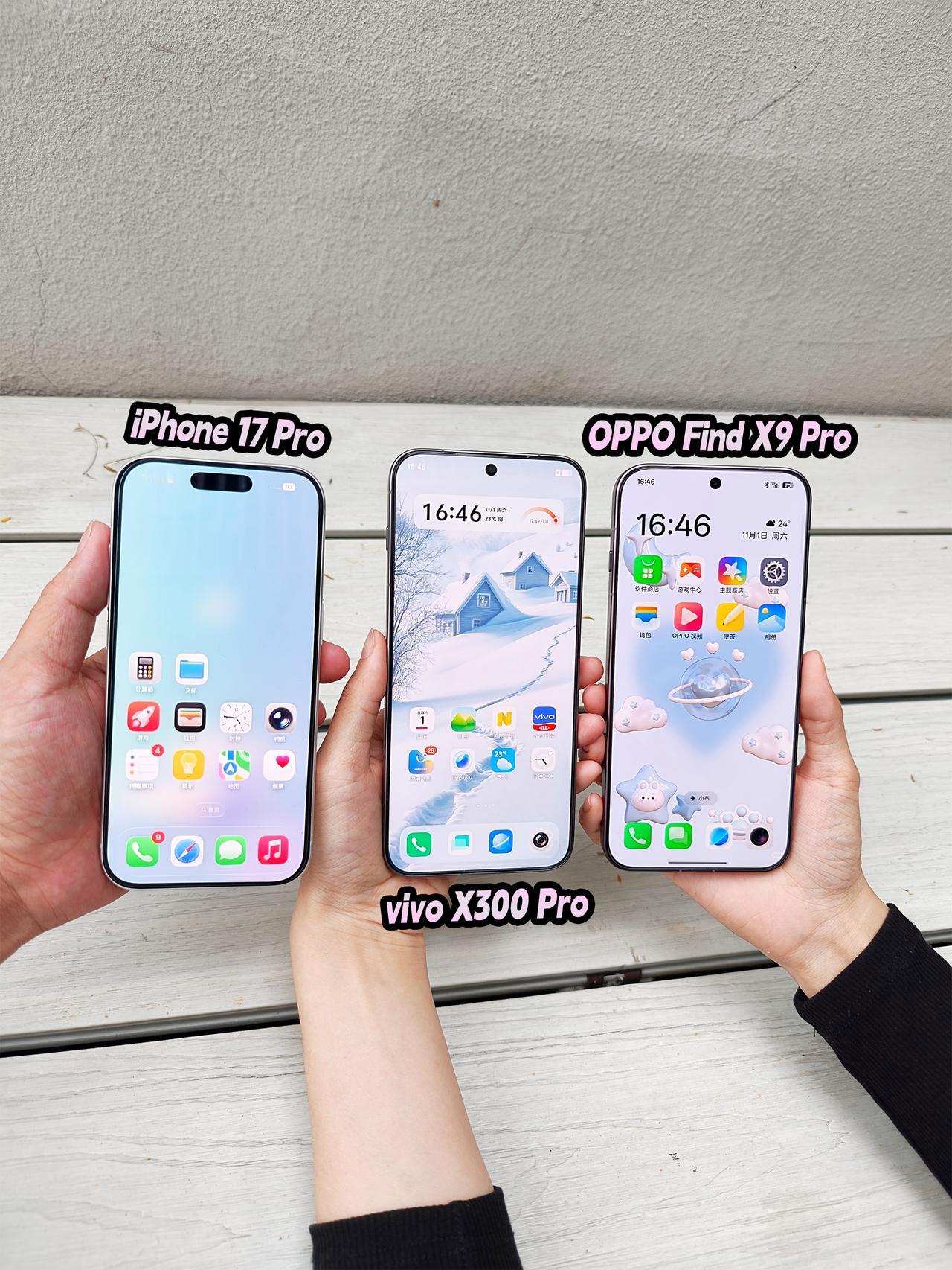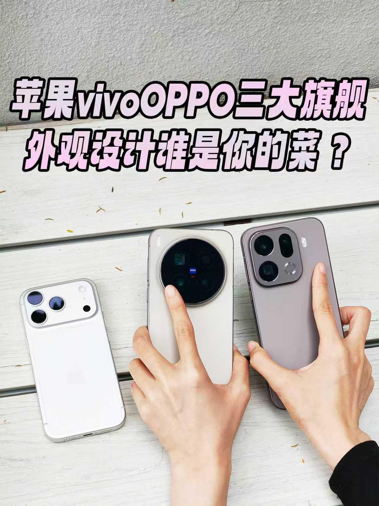 不看品牌只看外观的话,果OV你选谁? 不知不觉年底了,各家旗舰新机都发布了,最近就有不少人纠结,比较火的三大旗舰iPhone 17 Pro、vivo X300 Pro以及OPPO Find X9 Pro哪款更值得入,正好就让数码老司机来锐评一下😏 对一台手机的第一印象肯定先是看外观啦,苹果今年外观大改,17 Pro背部横条矩形模组辨识度很高,整体也比较有特点 vivo就是经典的国产大圆设计,对称美观但比较中规中矩,可能也是镜头模组比较大的原因,电池6510mAh。OPPO则是左上角矩阵设计,整体看着会更简约清爽一些,电池也比较大有7500mAh。 单看外观的话,我个人是比较喜欢OPPO的,简洁而且用着不容易硌手,大家更喜欢谁的设计呢?