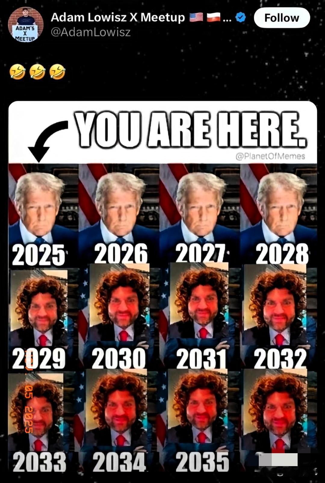 美国共和党三场落败,特别是马姆丹尼击败其他候选人赢得纽约市长后,马斯克坐不住了,他在社交媒体直接公布了接下来几年,美国总统的照片。 他的意思是,这些人一定不能当选下一届美国总统,下一届总统必须要是民主党当选,最好还是万斯。 特朗普看了这些照片会怎么想?万斯要一直连任至2036年,特朗普还想助力自己老婆呢?