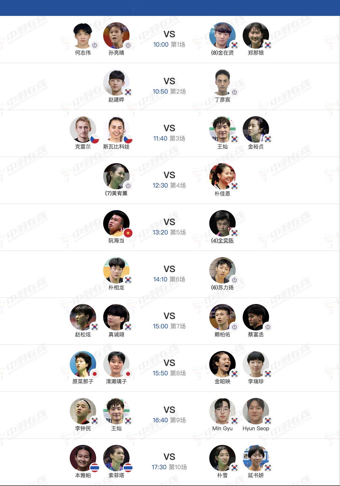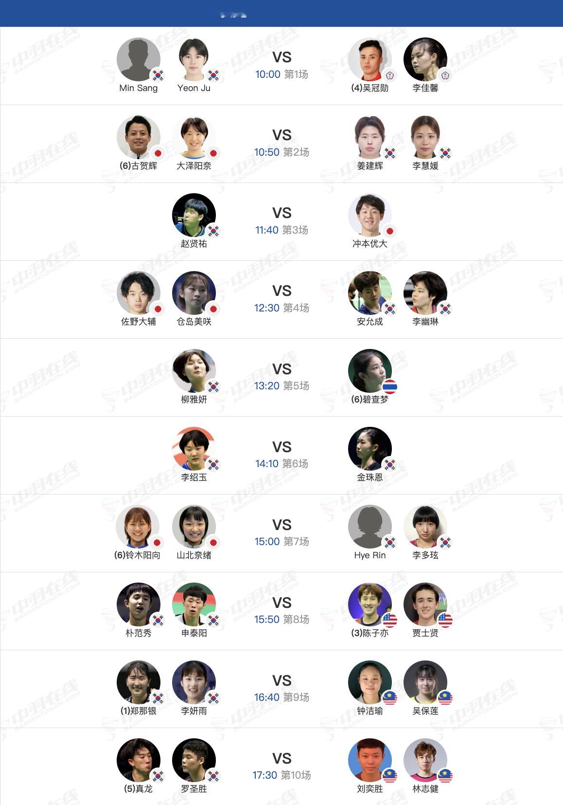2025年韩国羽毛球大师赛 11月6日各单项16进8,早上10点开赛: