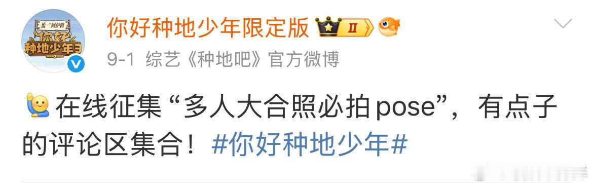 十个勤天 网友们还是太好心了你好种地少年 卓沅一家+十个勤天的合照pose征集,被网友们玩成抽象狂欢,老年表情包、高难度动作根本停不下来,赵一博求正常姿势,导演组怕是筛选到崩溃! ​​​