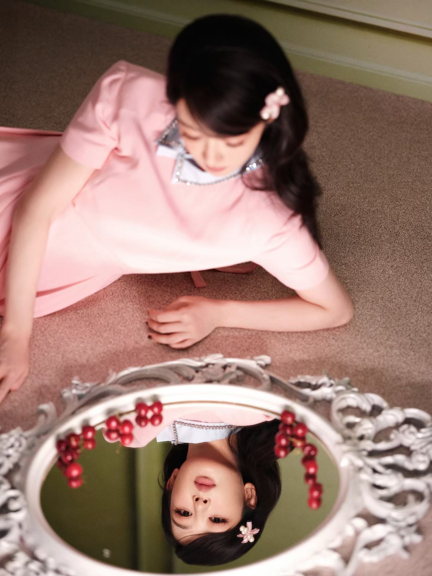 刘亦菲把死亡玫粉穿出了定制款的感觉,这种颜色普通人穿上分分钟黑三度,她居然能穿出