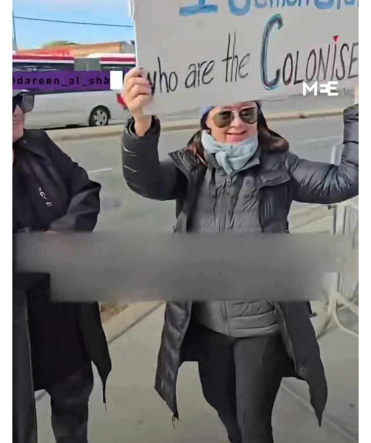 在加拿大多伦多市,一名亲以色列的老妇女(身穿“犹太保卫联盟”的服装)试图使用化学武器(后消防部门核实为实验室级氨水,有毒性)袭击亲巴勒斯坦的抗议者,不过她在打开瓶盖后就被警察逮捕了。