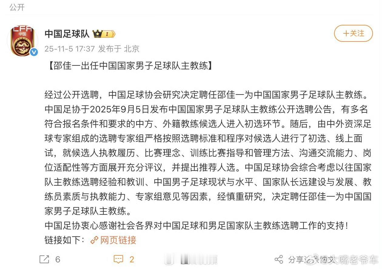 “至少目前来看,中国本土教练看不到任何在国足帅位上成功的可能性!无论于根伟还是邵佳一,现在去国足纯粹是害了他们,一不小心就断送自己职业生涯!”