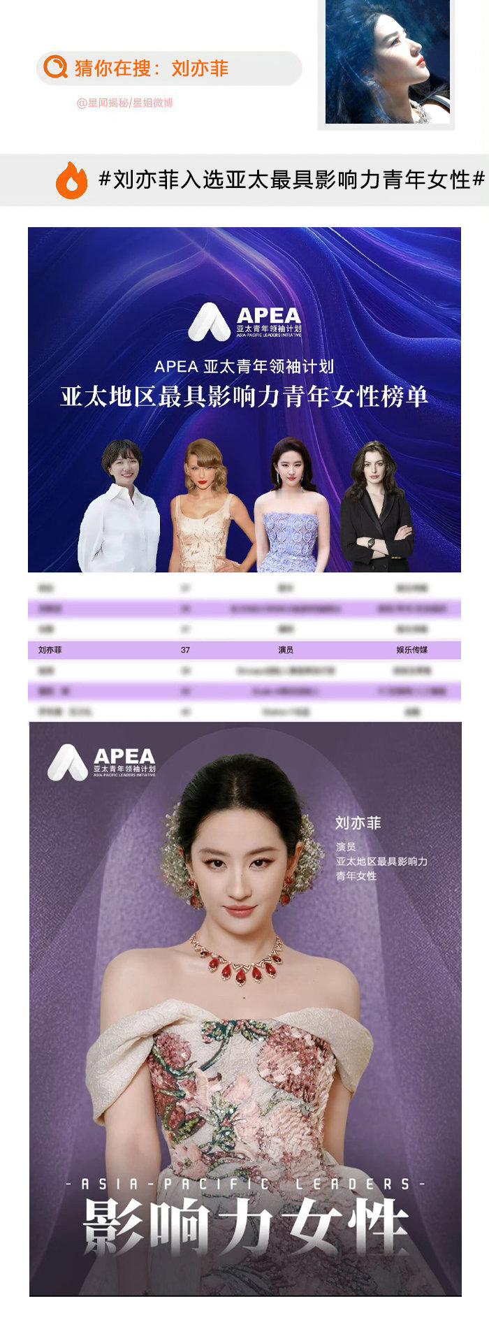 刘亦菲入选亚太最具影响力青年女性成为娱乐传媒和演员行业最具代表性的人物之一刘亦