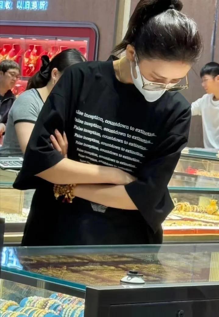 佟丽娅素颜逛水贝,头发稀了戴假发包,手上却戴满金镯子。 没人催她美,她也没装高冷