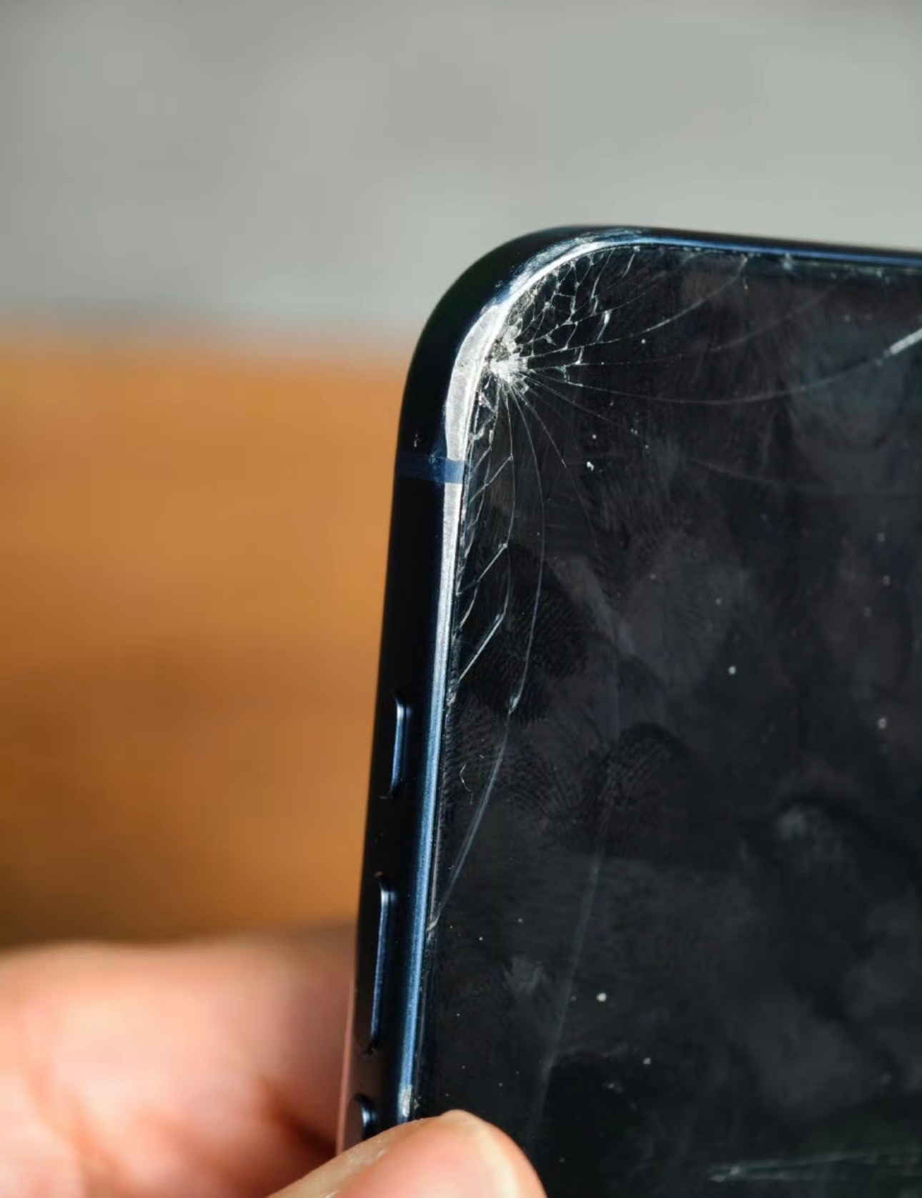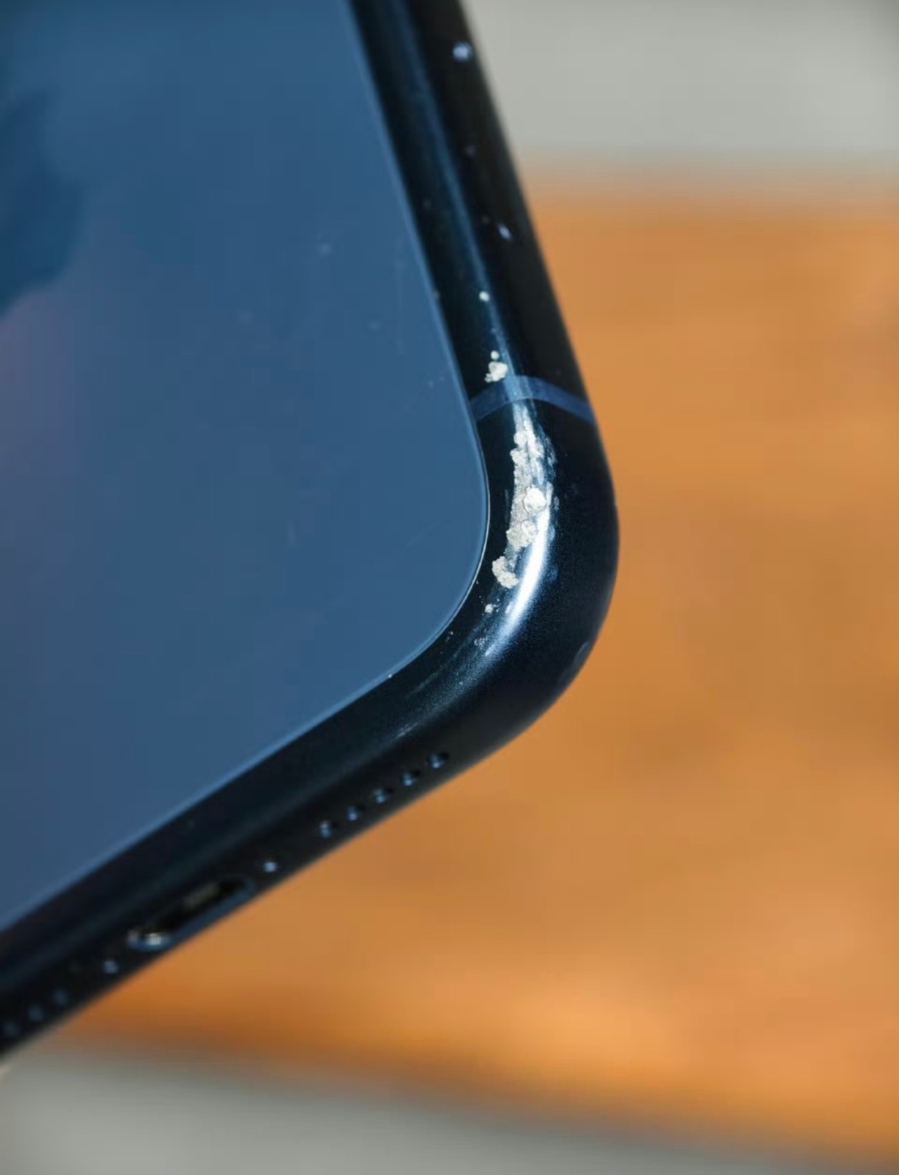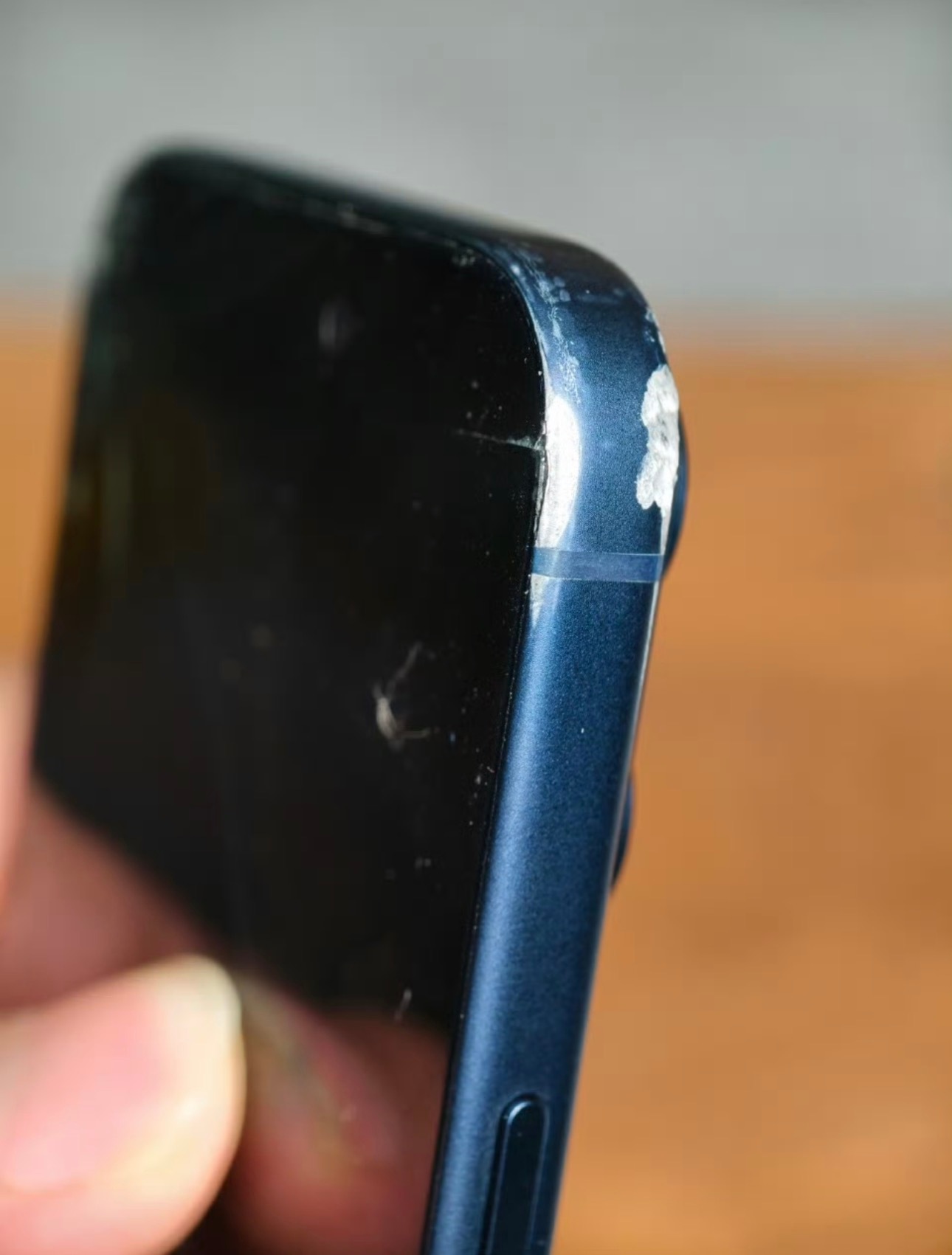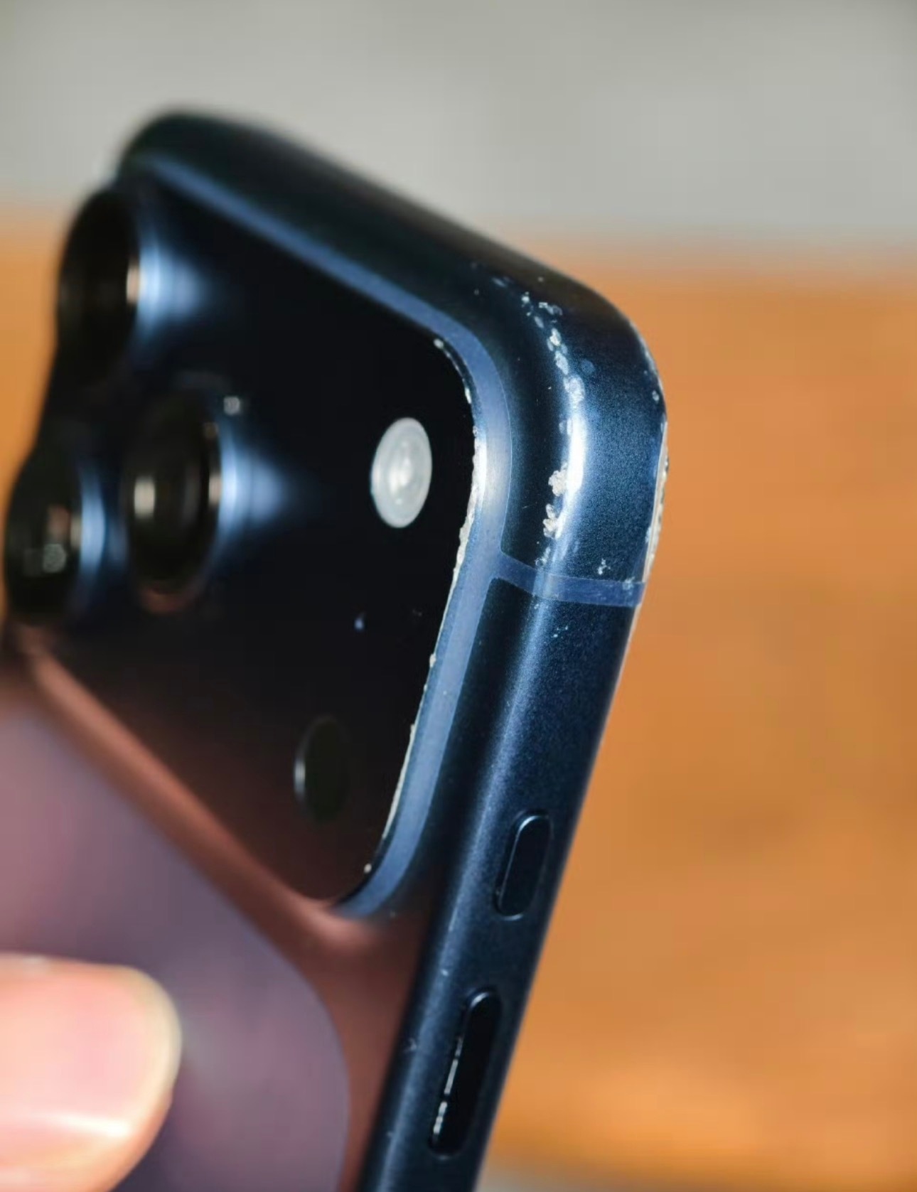 客户说从三楼摔下去的,一个17PM 国行 512就成这样了,外壳变形,屏幕内爆……