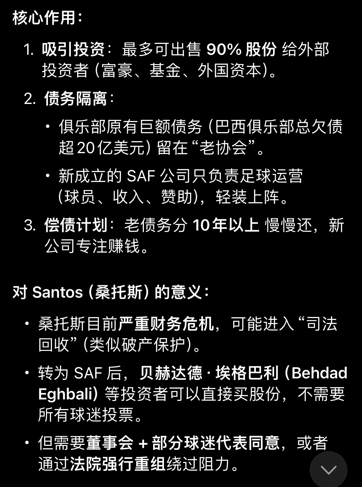 需要注意的是桑托斯需要转为SAF(巴西足球有限公司),球迷可能害怕失去控制权.