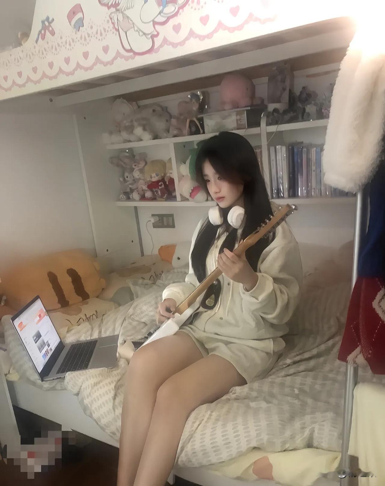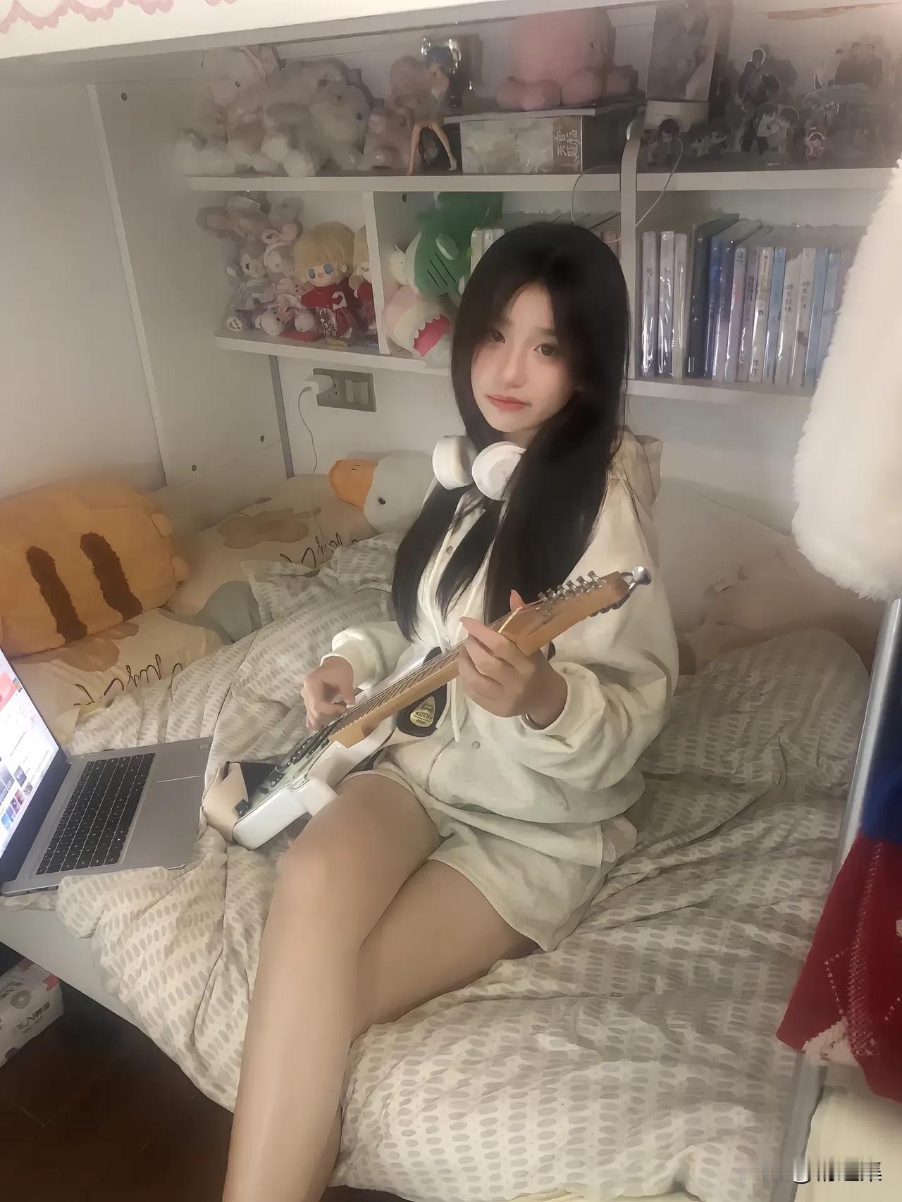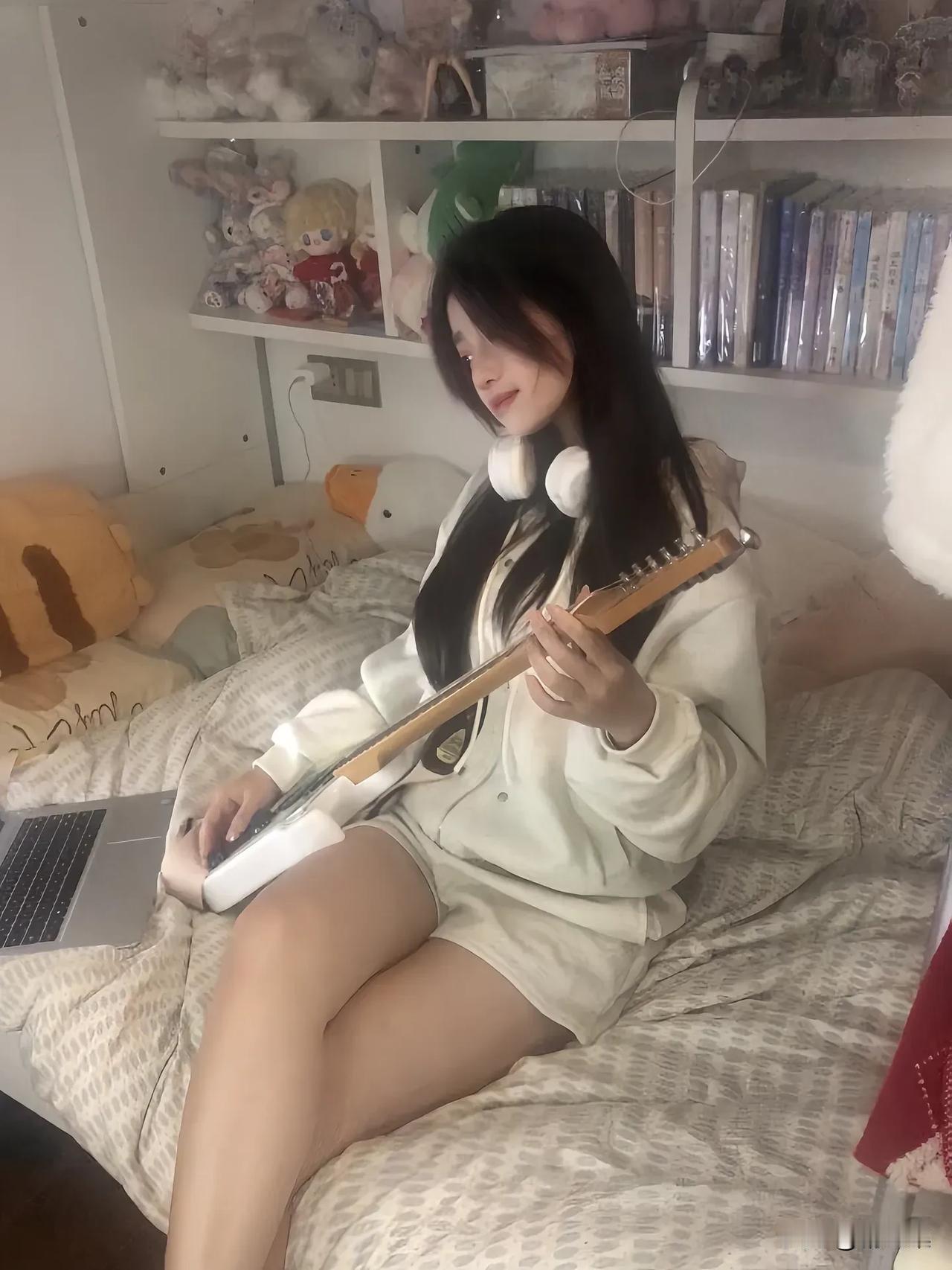 少女心爆棚的卧室,弹着吉他,享受音乐时光🎸✨